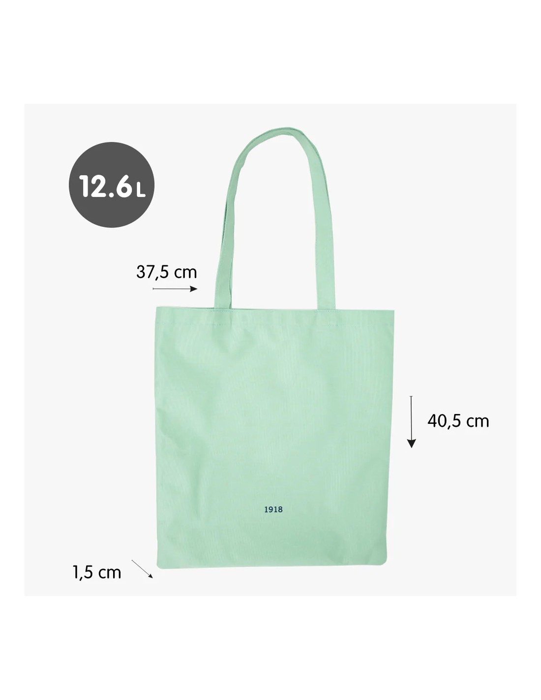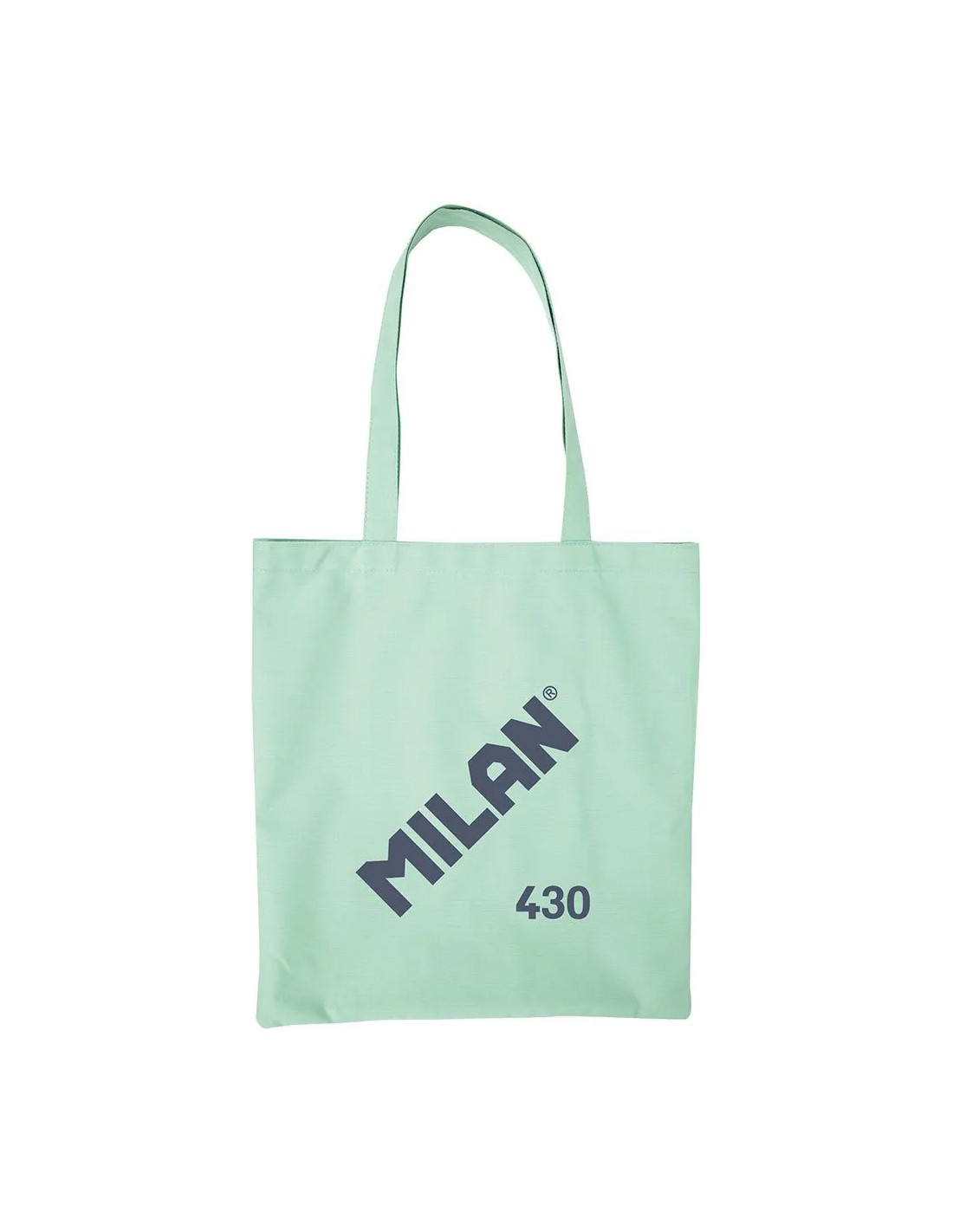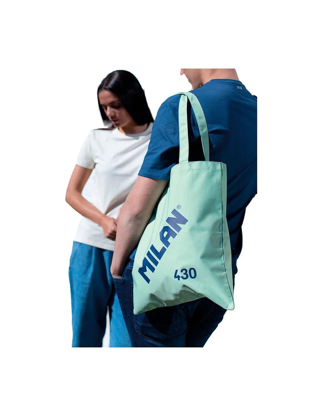 Bolsa de tela tote bag color verde. colección 430 since 1918, colores y diseño originales de las gomas de borrar milan, fabricadas en españa desde 1918. ideal para la compra, bolso o para llevar lo necesario para el día a día. tejido 'ripstop': ligero y resistente a la rotura y rasgaduras. composición polyester. medidas 0,5x38x41cm. largo asa 27cm. capacidad 12,6 litros.