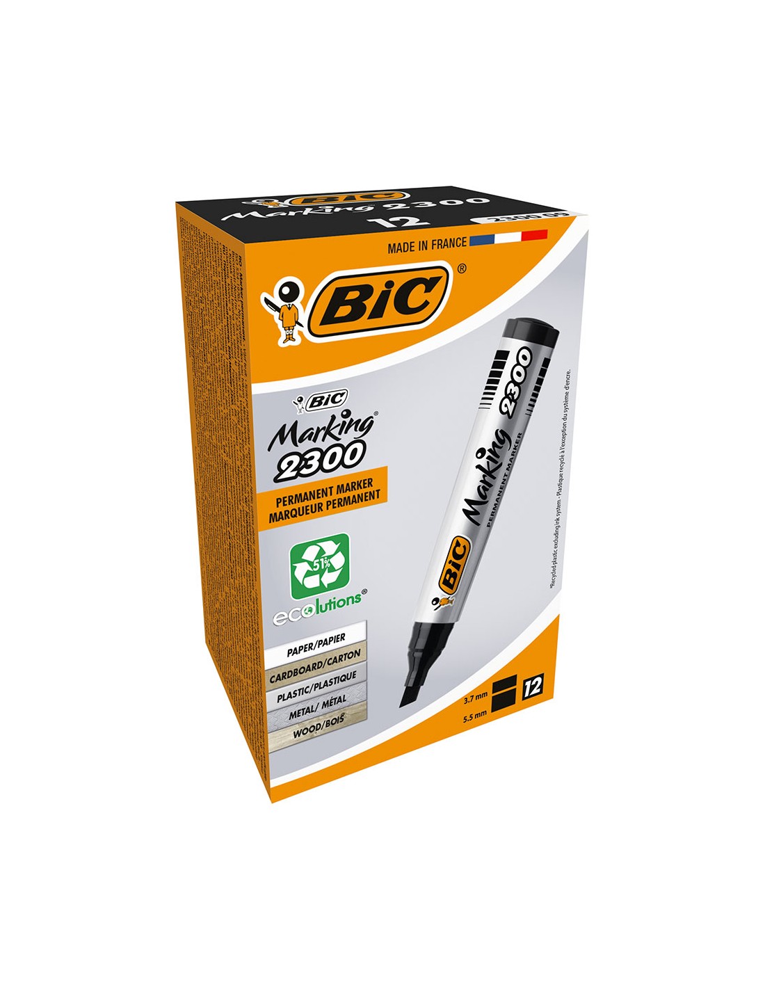 Marcador permanente negro 2300, punta biselada, caja 12 uds