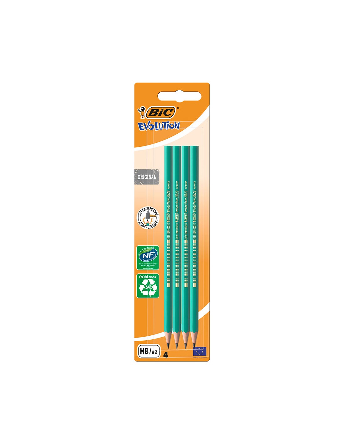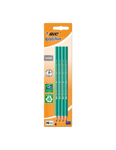 Lápiz evolution hb 2 blister 4 uds lápiz de grafito fabricado en resina sintética. contiene un 64% de materiales reciclados