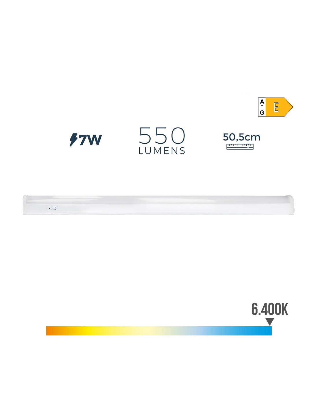 Regleta electronica led 7w conectable max. 12pcs medidas: 50,5x2,2x3,5cm 6500k luz fria 600lm ip20 220-240v edm 25.000h