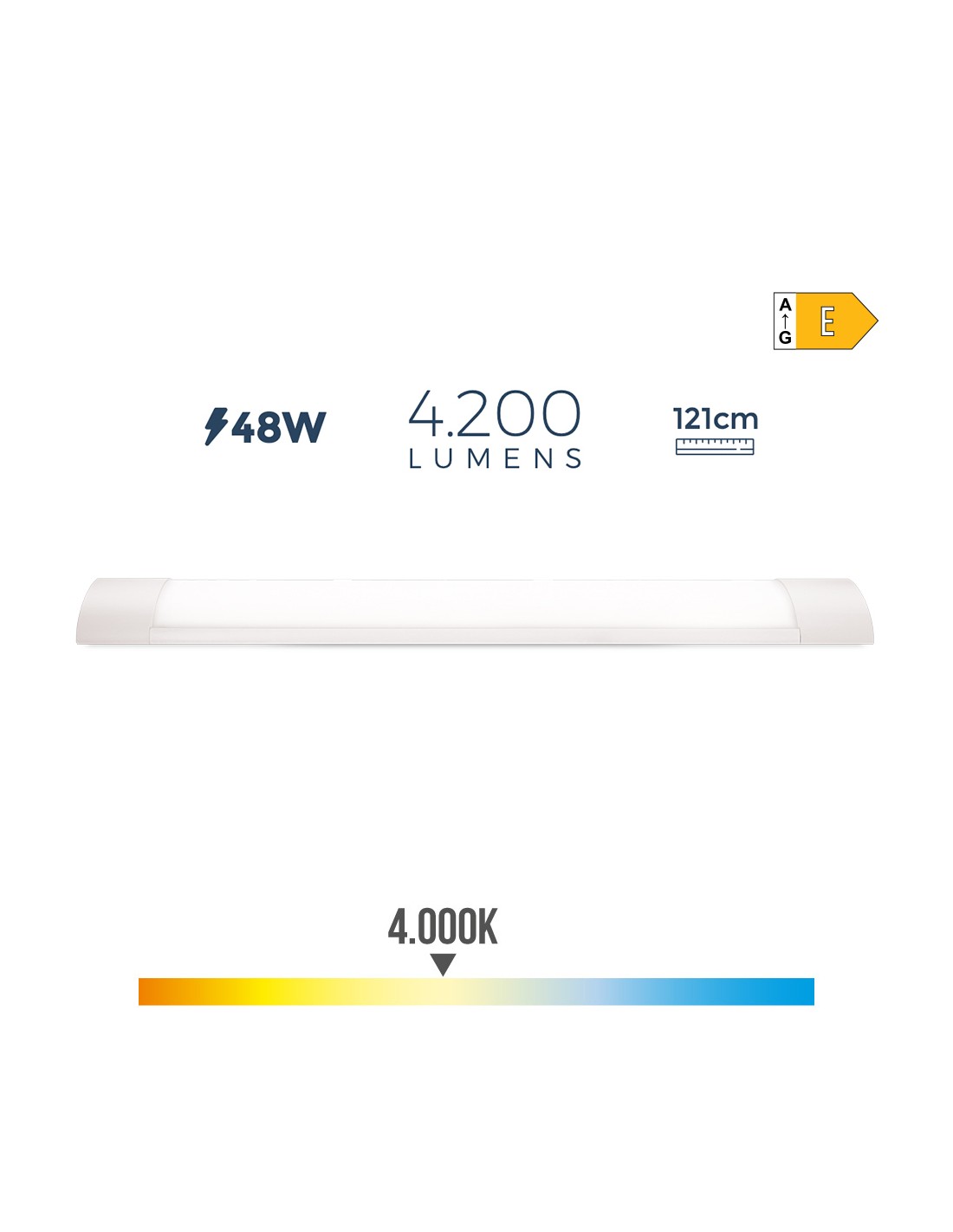 Regleta electronica led 48w 4000k luz dia ip20 420 leds 4200lm (con soportes) angulo de apertura 110°. 220-240v medidas: 121,3x3,1x12cm 25.000h edm