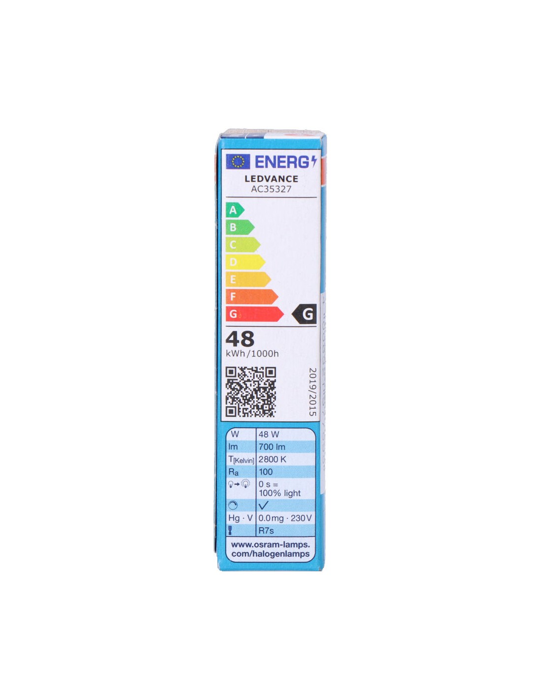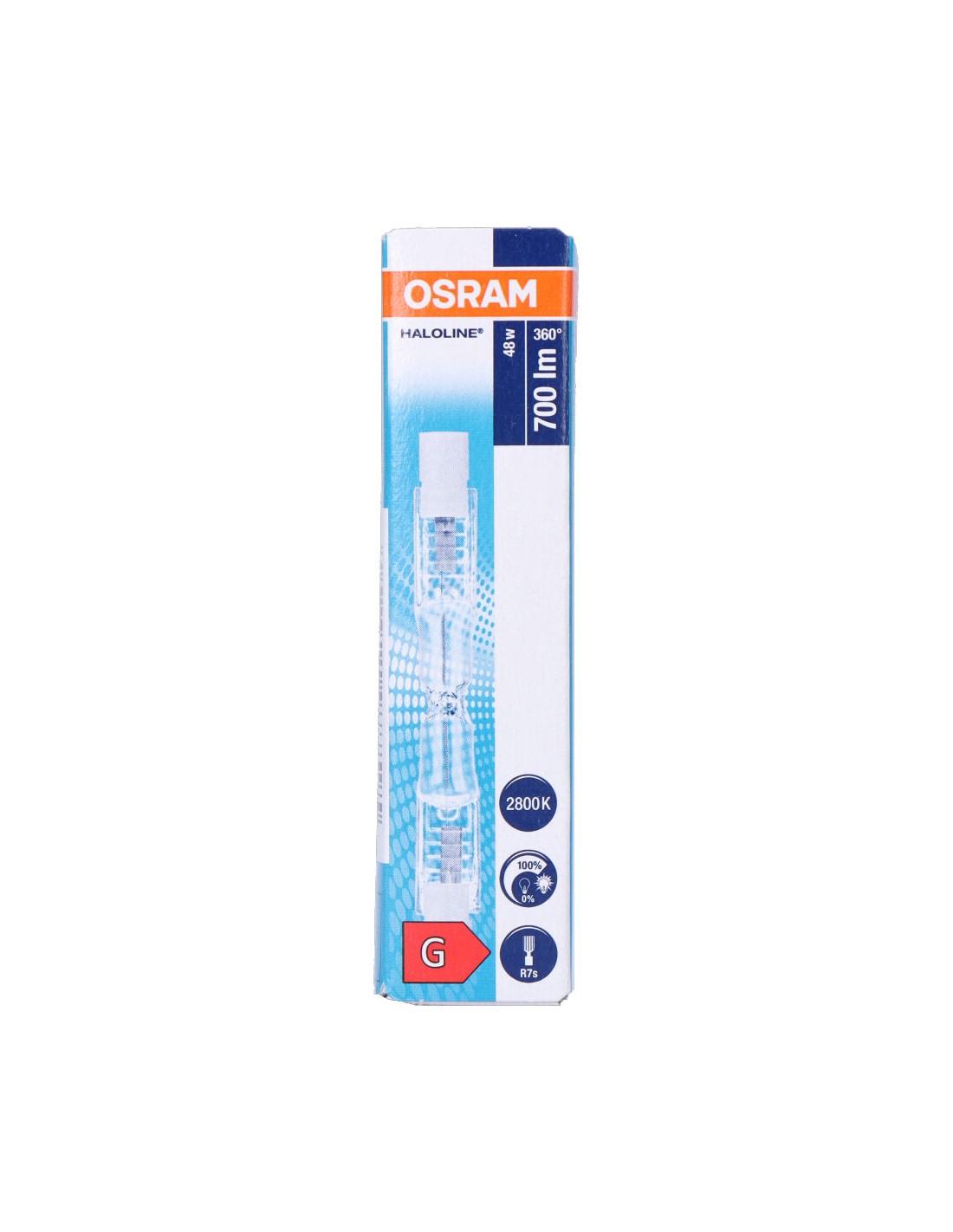 Bombilla halogena lineal 48w (equ. 60w). 700lm. medida: 78mm haloline pro vida estimada: 2000h. tipo de luz: ultra brillo. angulo de apertura: 360°. dimable. tension: 220-240v osram