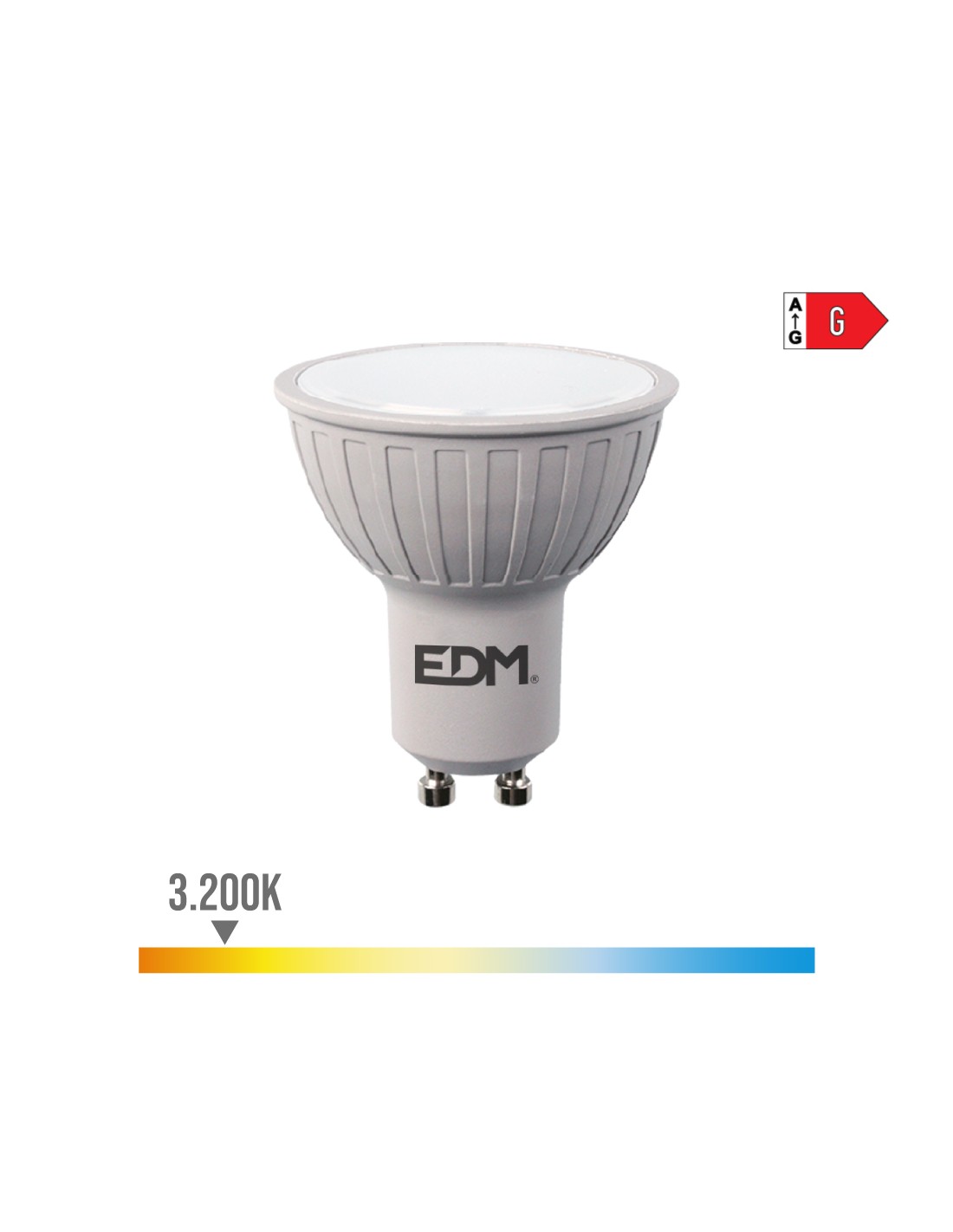 Bombilla dicroica led regulable gu10 6 w 500 lm 3200 k luz cálida ø5 x 5,5 cm 25000 h ac 220 - 240 v clase energética: g. ángulo de apertura: 120°