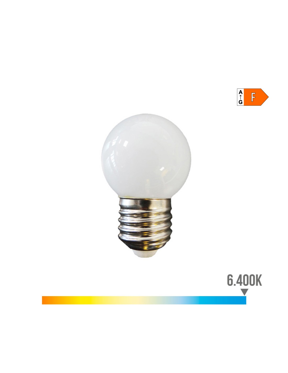 Bombilla esferica led e27 1,5w 130lm 6400k luz fria ø45x69mm 25000h ac 220-240v clase energetica: f. angulo de apertura: 220° edm