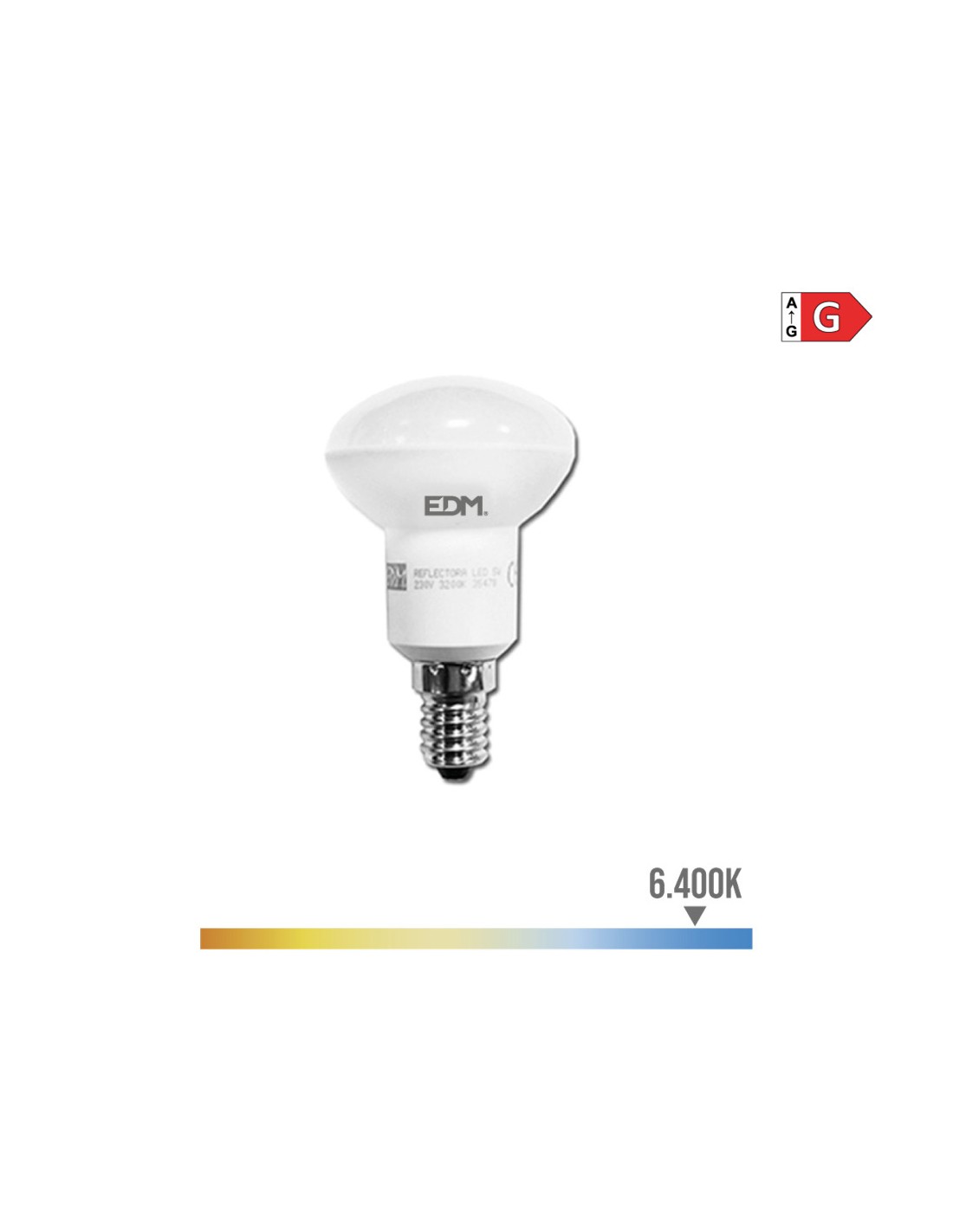 Bombilla reflectora led r50 e14 5w 400lm 6400k luz fria ø50x86mm 25000h ac 220-240v clase energetica: g. angulo de apertura: 120° edm