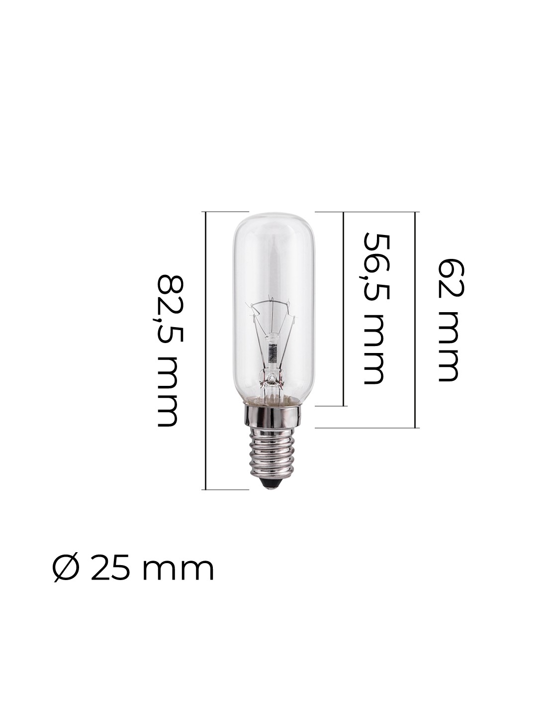 Bombilla incandescente tubular transparente 25w e14 tension: 220-240v