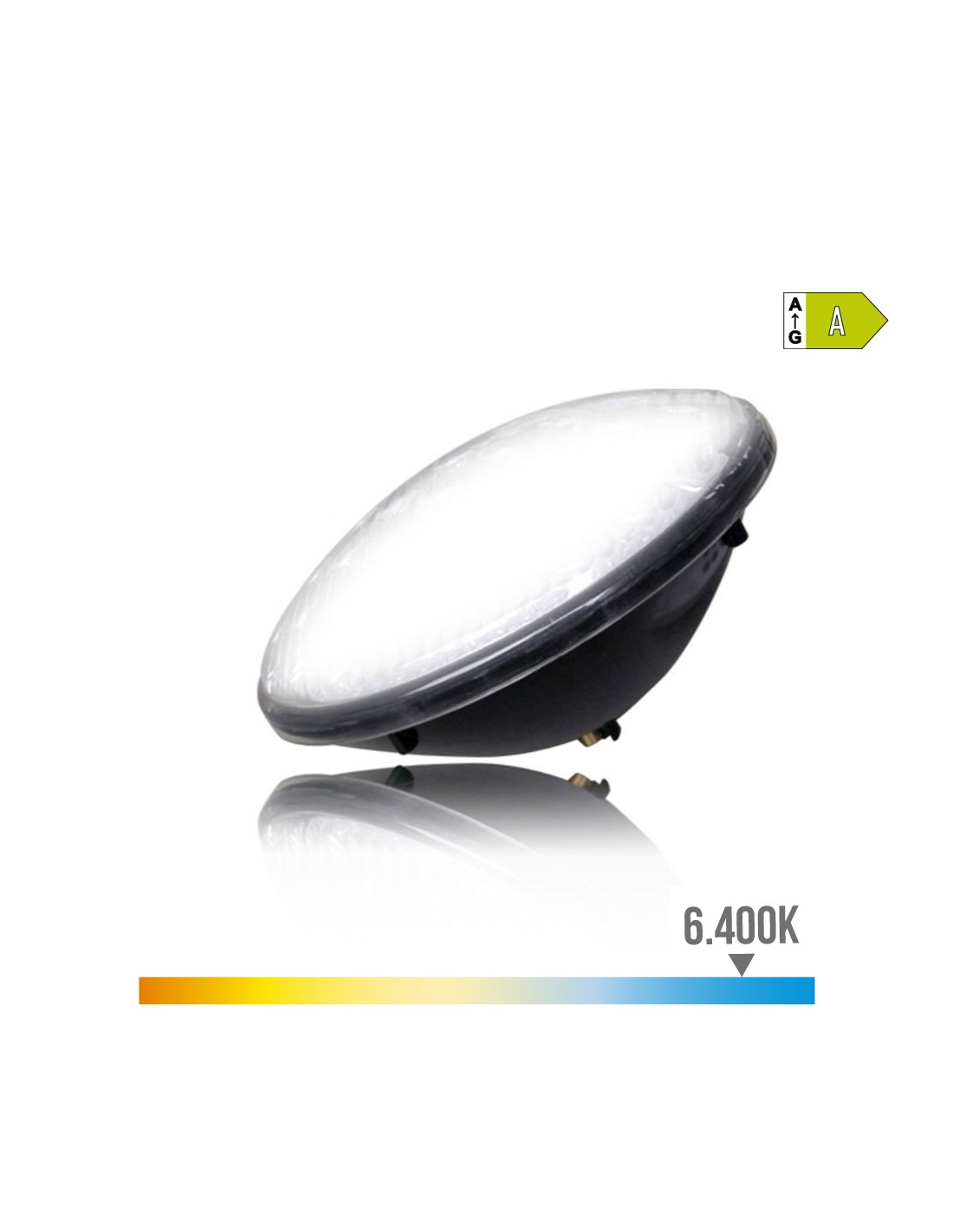 Bombilla para piscina led par56 15w 1300lm 6500k blanco frio medidas: ø17,6x6cm (diámetro/alto) 25000h 12v clase energetica: a. angulo de apertura: 120°. conexion por terminales ip68 edm