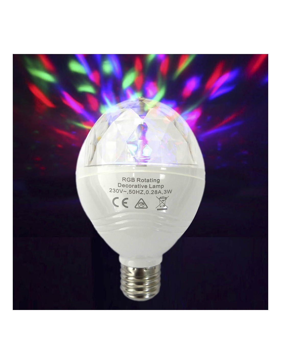 Bombilla discoteca led rgb e27 3w multicolor con rotacion 360° ø8x13cm (diámetro/alto) 20000h v-hz 220-240v angulo de apertura: 200° edm