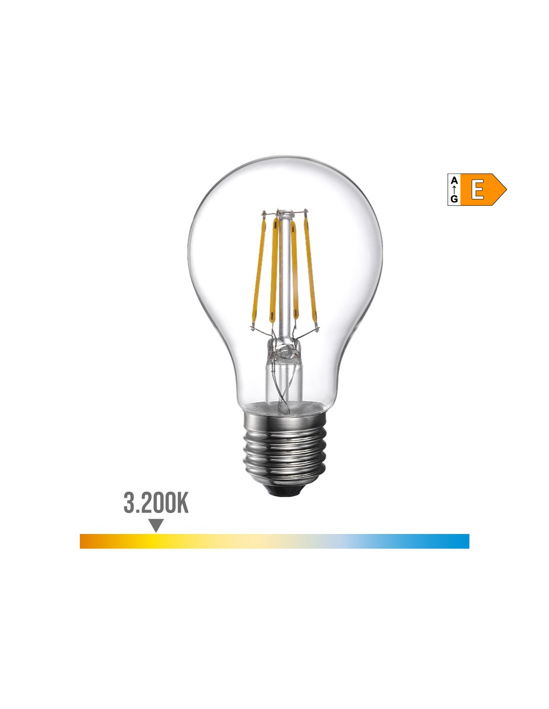 Bombilla standard con filamento de led e27 4w 500lm 3200k luz calida medidas: ø6x10,5cm (diámetro/alto) 25000h ac 220-240v clase energetica: e. angulo de apertura: 300° edm