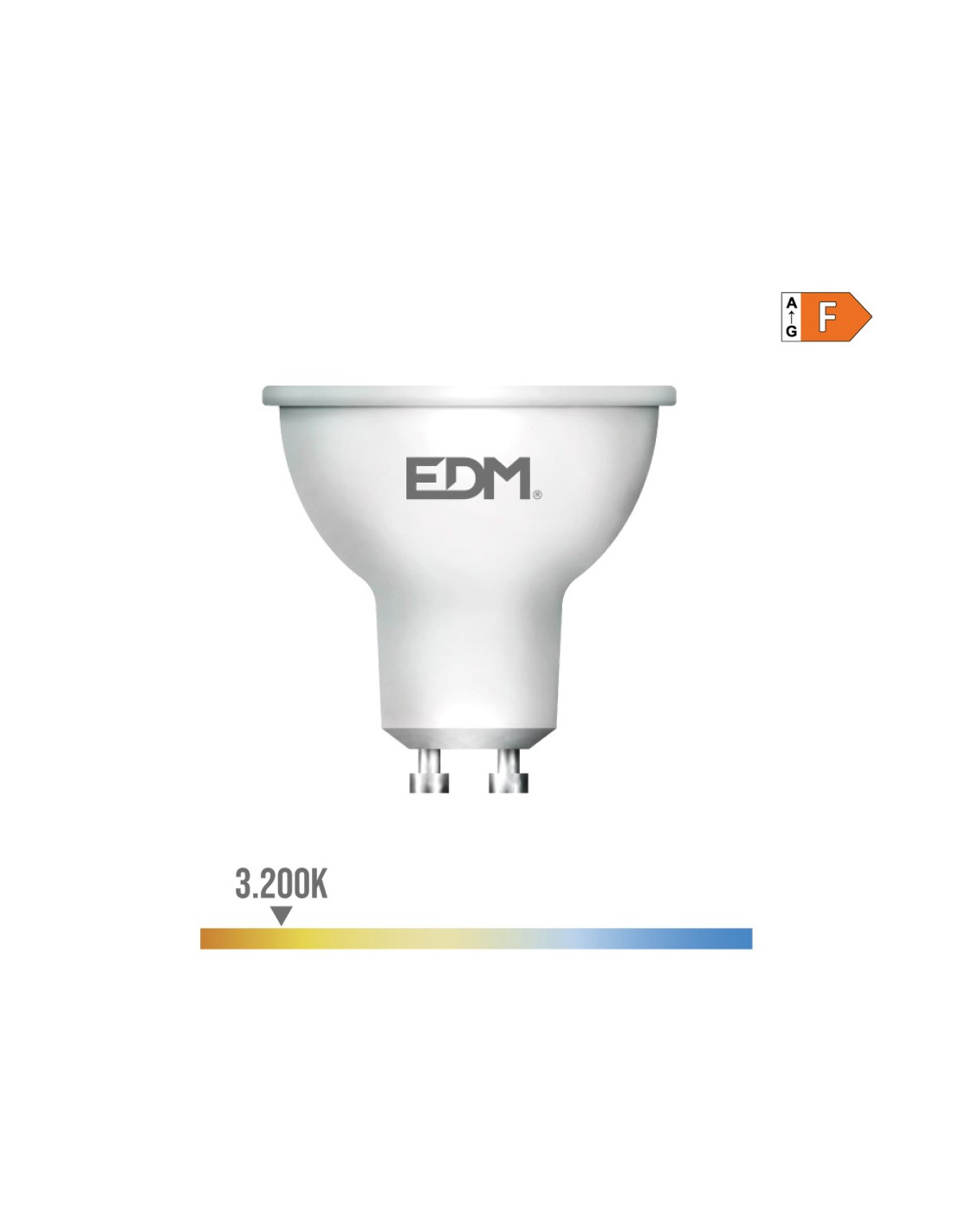 Bombilla dicroica led gu10 7w 550m 3200k luz calida ø5x5,5cm (diámetro/alto) 25000h ac 220-240v clase energetica: f. angulo de apertura: 45° edm