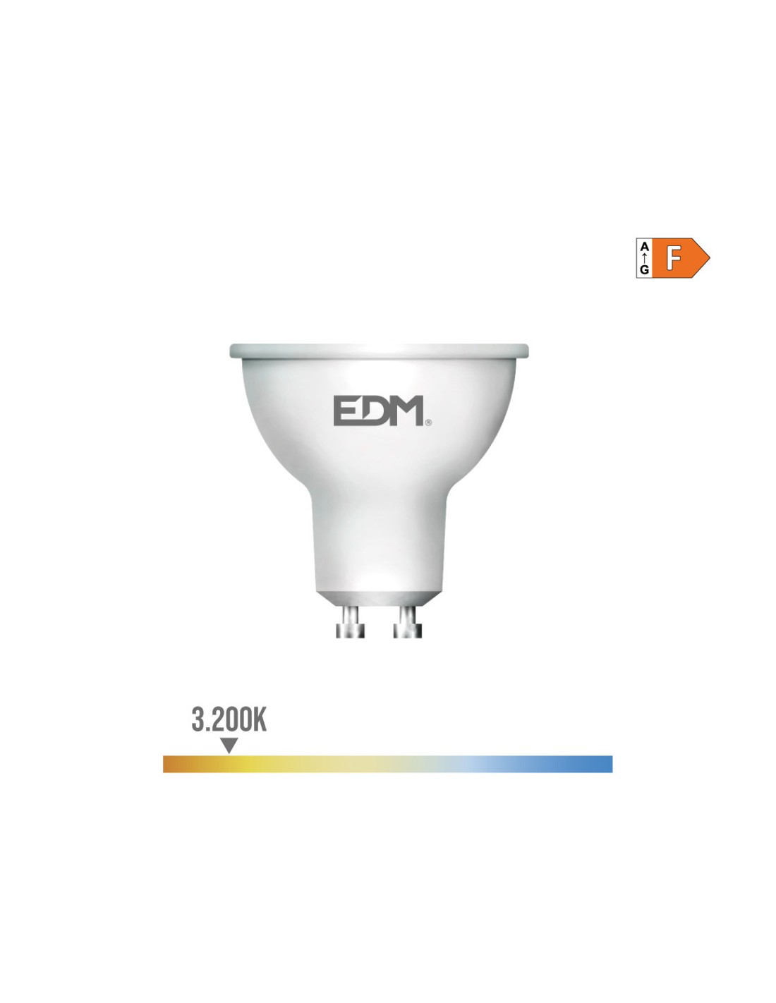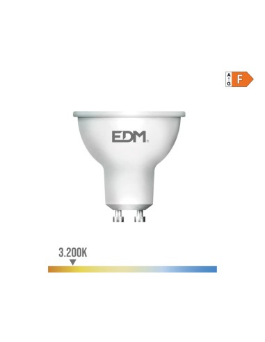 Bombilla dicroica led gu10 7w 600m 3200k luz calida ø5x5,5cm (diámetro/alto) 25000h ac 220-240v clase energetica: f. angulo de apertura: 120° edm