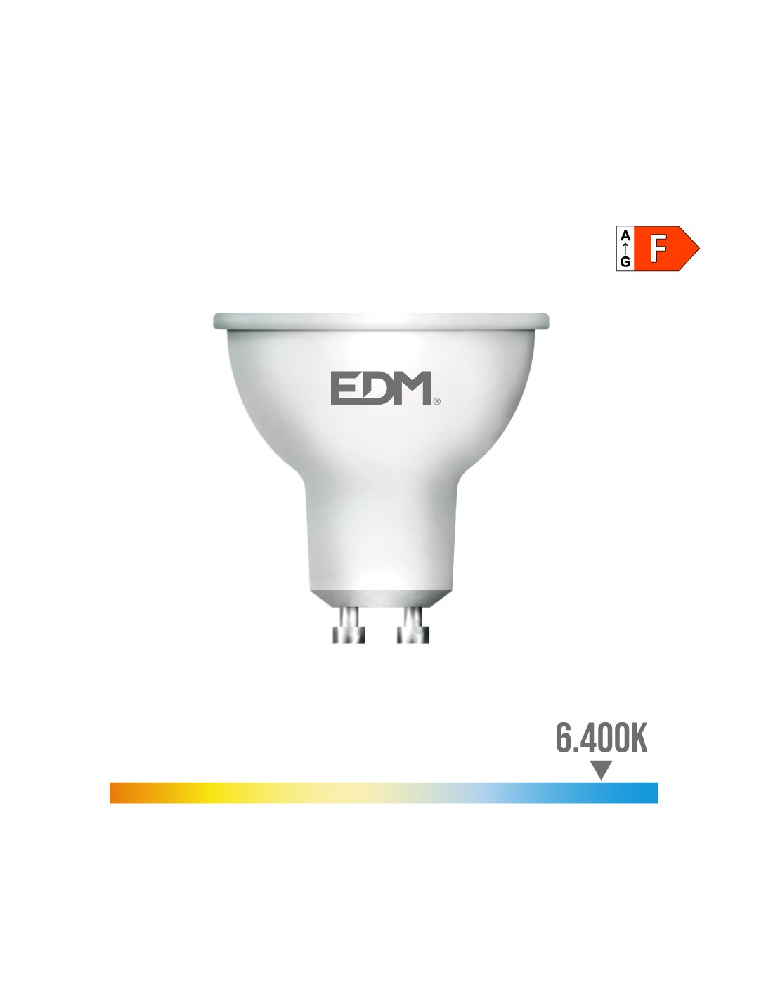 Bombilla dicroica led gu10 7w 600m 6400k luz fria ø5x5,5cm (diámetro/alto) 25000h ac 220-240v clase energetica: f. angulo de apertura: 120° edm
