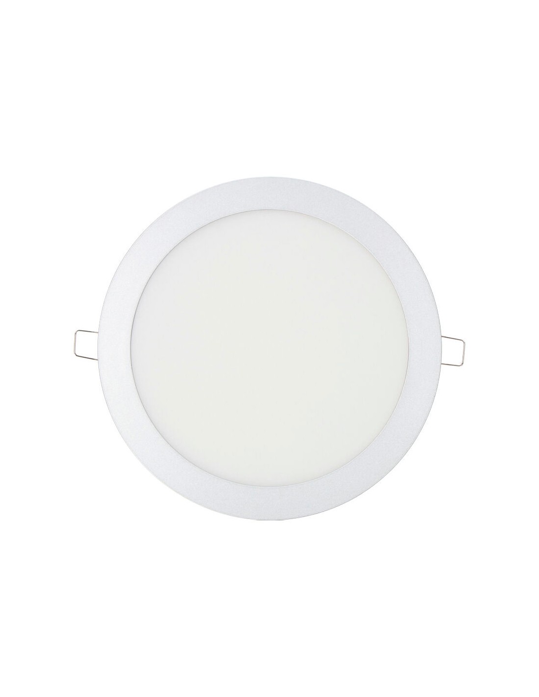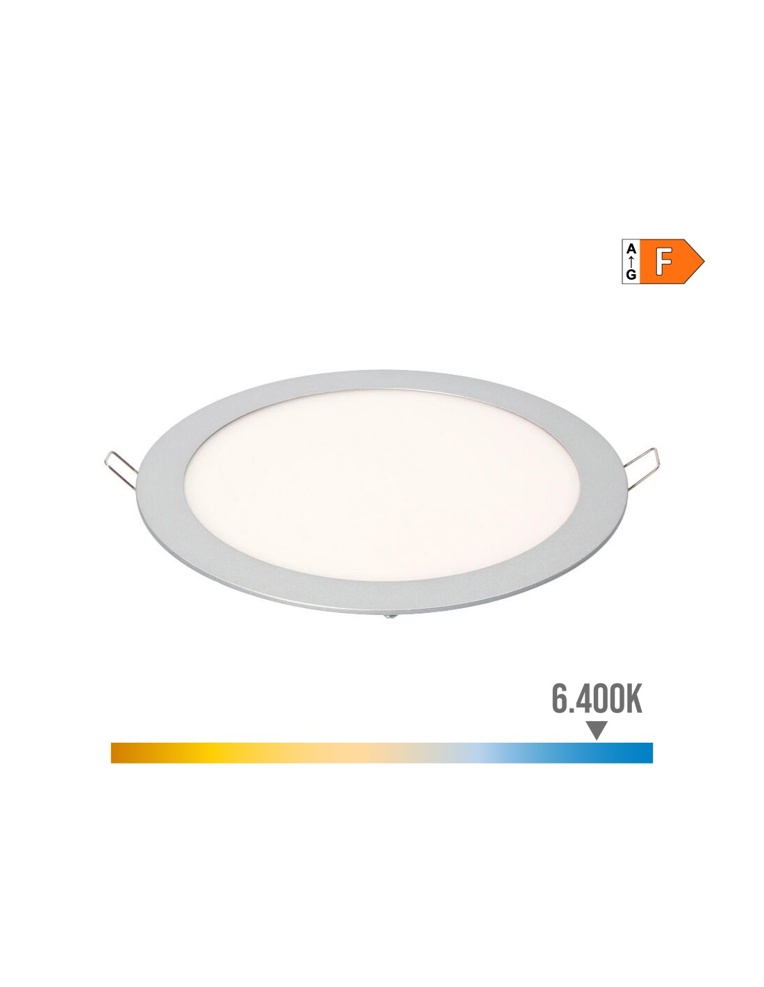 Downlight led empotrable redondo 20 w luz fría 6400 k 1500 lm 90 leds flujo luminoso: 360° ángulo de apertura: 160° medidas: exterior: ø22,5 cm - enclavamiento: ø20 cm. marco cromado. cristal mate. ip20 tensión: 220-240 v~50 hz vida estimada: 25.000 h clase energética: f incluye transformador