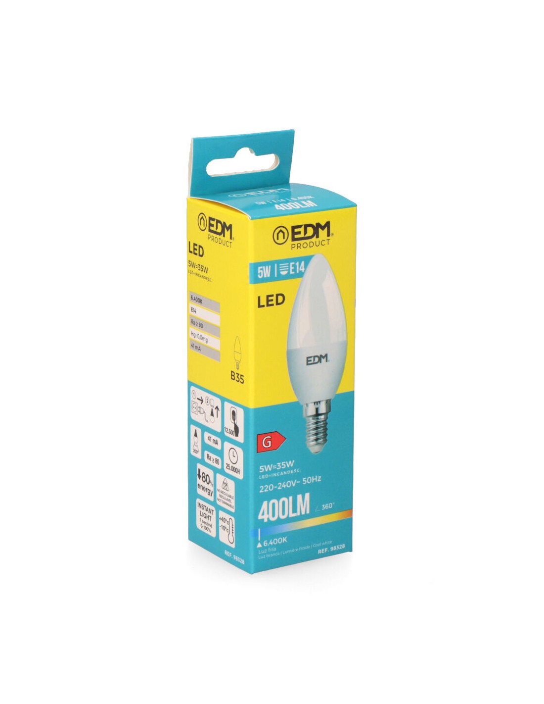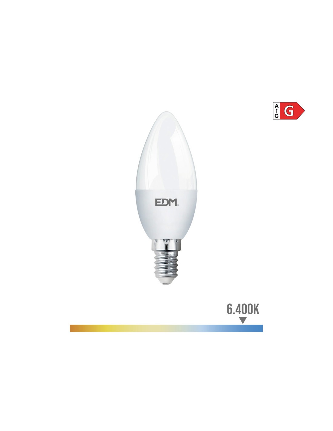 Bombilla vela led e14 5w 400lm 6400k luz fria ø3,5x10cm (diámetro/alto) 25000h ac 220-240v clase energetica: g. angulo de apertura: 200° edm