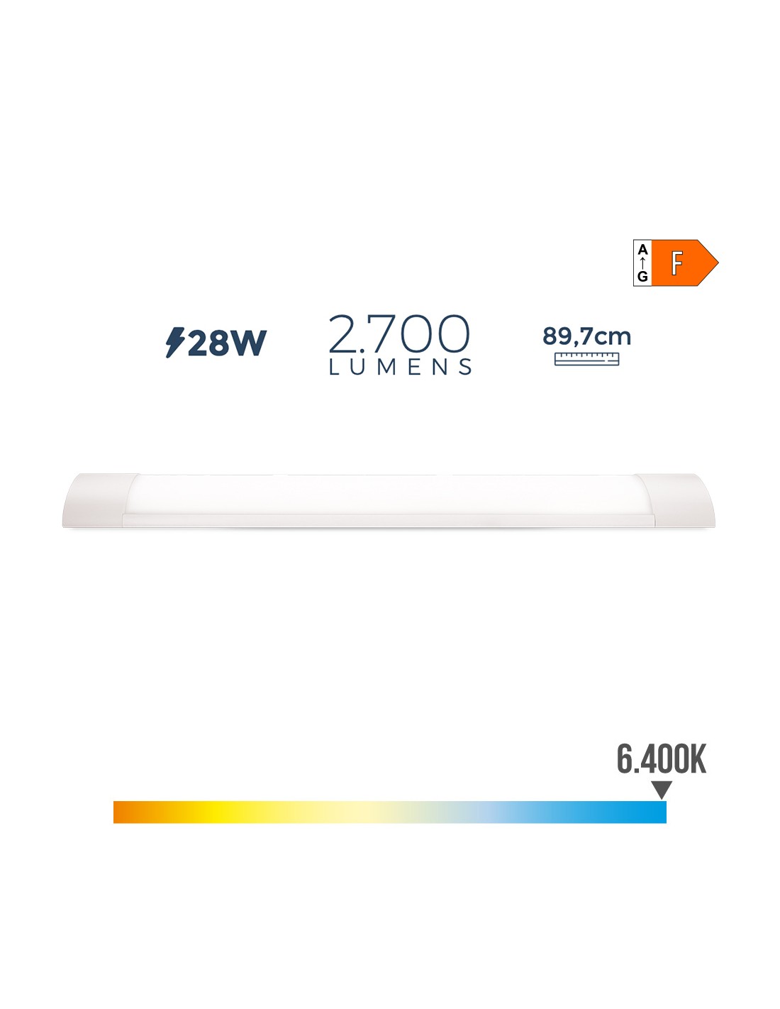 Regleta electronica led 28w 6500k luz fria ip20 196 leds 2700lm (con soportes) angulo de apertura 110°. 220-240v medidas: 89,7x3,1x8cm edm 25.000h