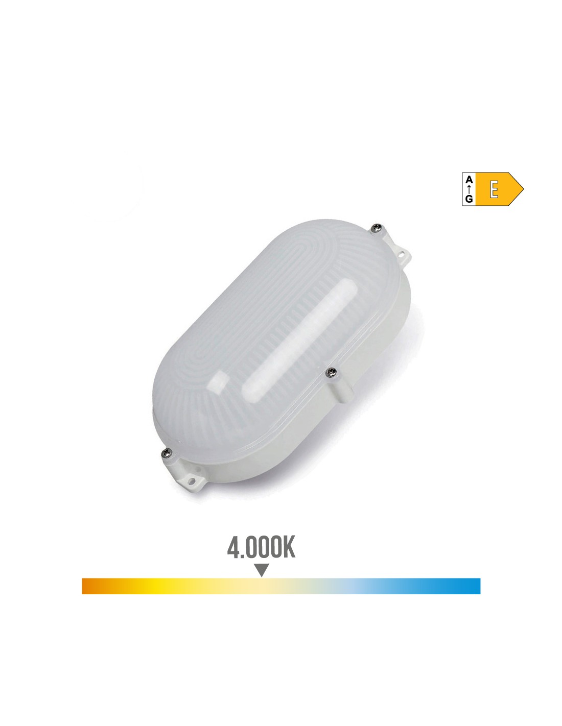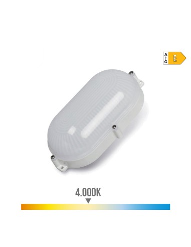 Aplique exterior led oval blanco 9w ip65 4000k luz dia 810lm.52 leds. medidas: 212x118x66mm 220-240v 25.000h