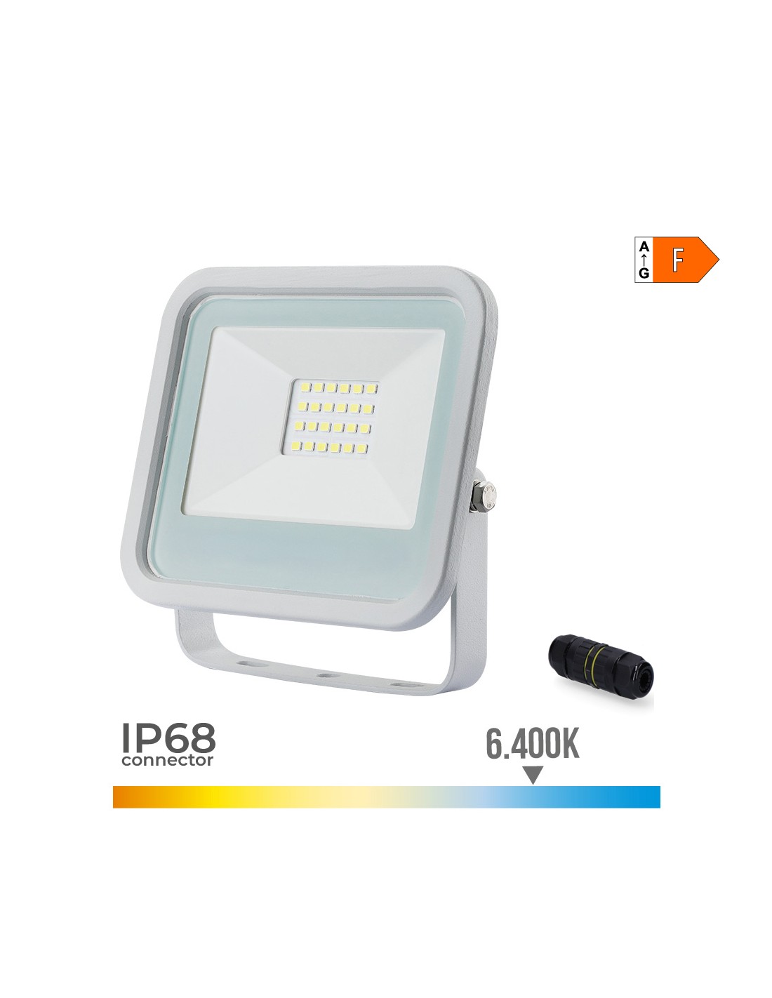 Foco proyector led blanco 20 w 1520 lm 6400 k luz fría 24 leds ip65 vida estimada: 25000 h tensión: 220 - 240 v ~50 hz clase energética f flujo luminoso: 120° medidas: 12,4 x 2,8 x 10,6 cm incluye conector de cables ip68