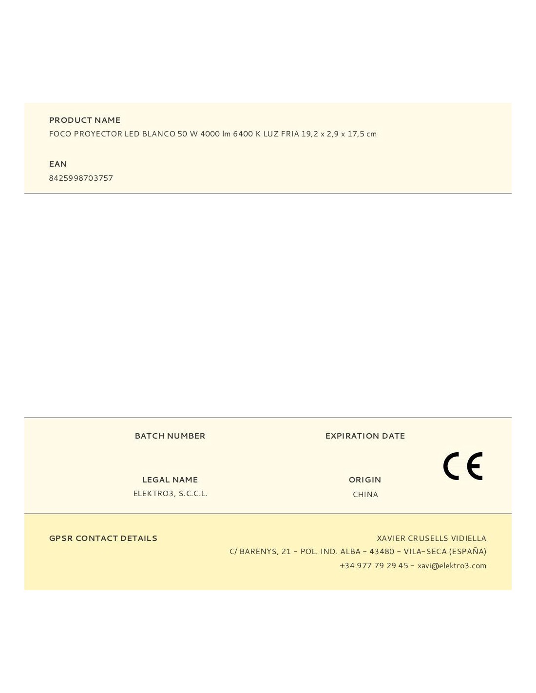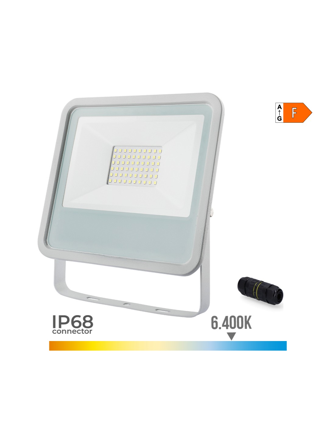 Foco proyector led blanco 50 w, 4000 lm, 6400 k, luz fría, ip65, medidas: 19,2 x 2,9 x 17,5 cm vida estimada: 25000 h, tensión: 220 - 240 v ~ 50 hz, clase energética: f, ángulo de apertura: 120°