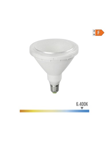 Bombilla par38 led e27 15w 1510lm 6400k luz fria ip64 medidas: ø12x13,8cm (diámetro/alto) 25000h ac 220-240v clase energetica: f. angulo de apertura: 40° edm