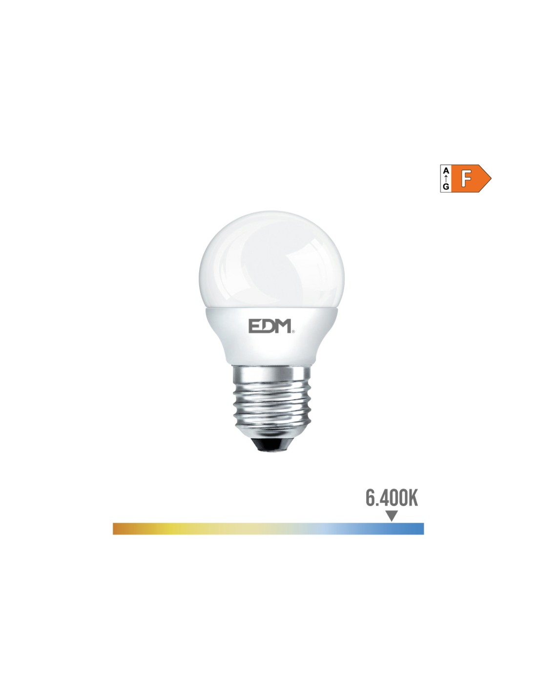 Bombilla esferica led e27 7w 600lm 6400k luz fria ø4,5x8cm (diámetro/alto) 25000h ac 220-240v clase energetica: f. angulo de apertura: 200° edm