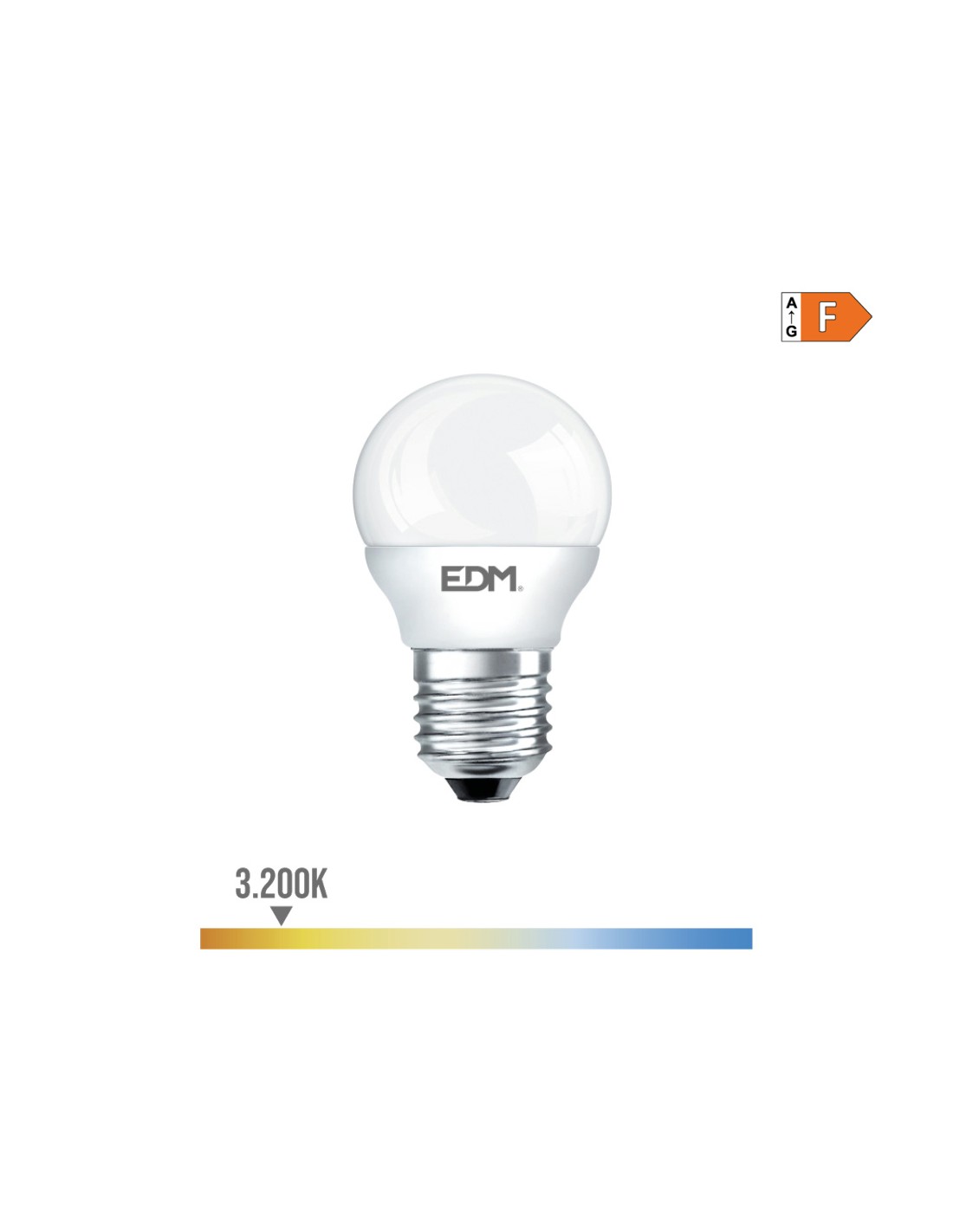 Bombilla esferica led e27 7w 600lm 3200k luz calida ø4,5x8cm (diámetro/alto) 25000h ac 220-240v clase energetica: f. angulo de apertura: 200° edm