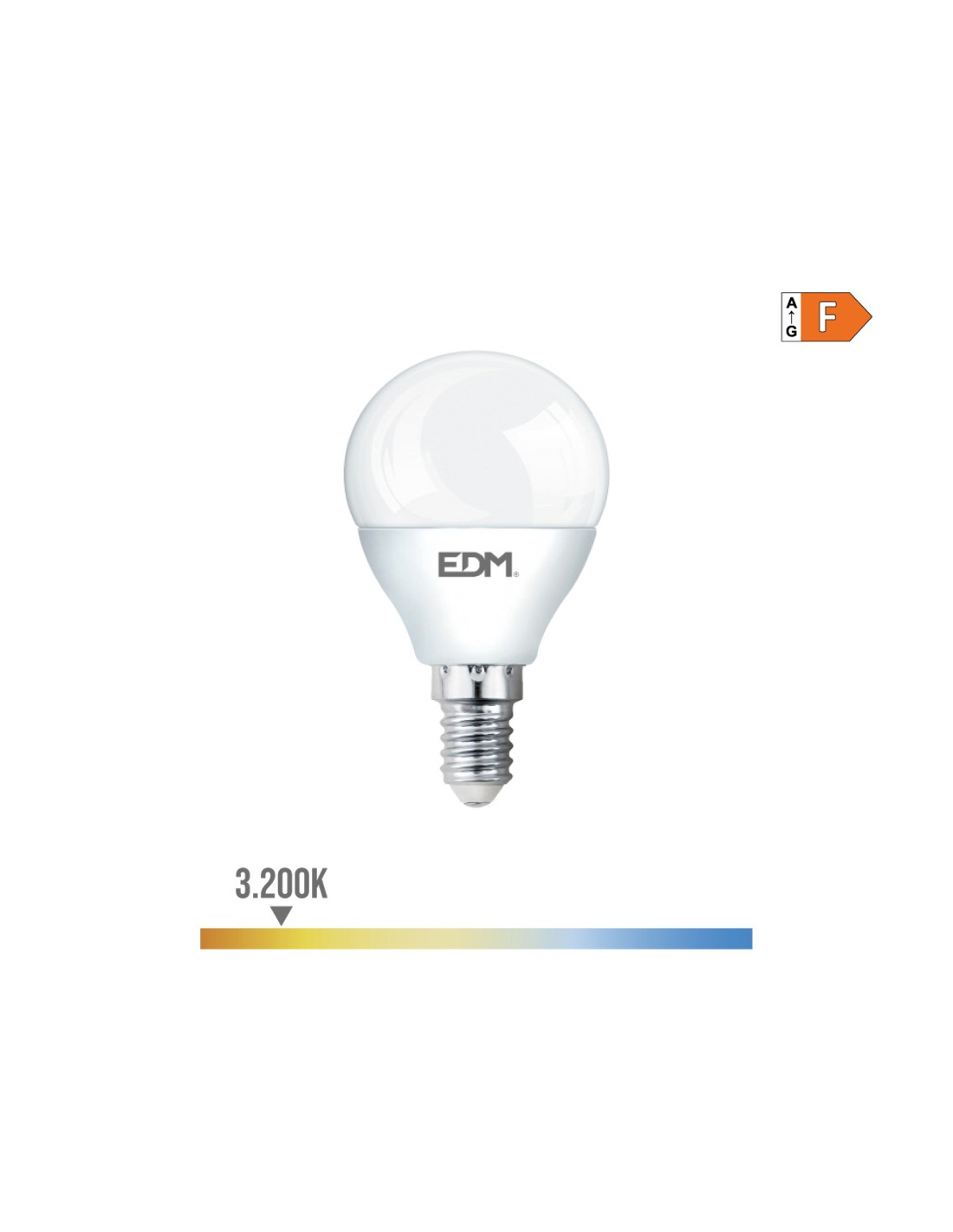 Bombilla esferica led e14 7w 600lm 3200k luz calida ø4,5x8,2cm (diámetro/alto) 25000h ac 220-240v clase energetica: f. angulo de apertura: 200° edm