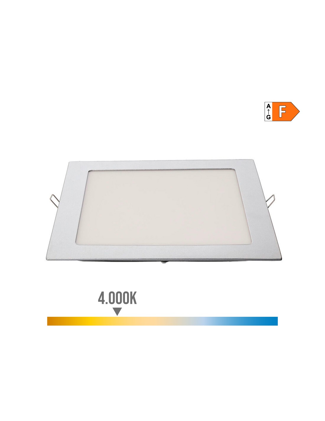 Downlight led empotrable cuadrado 20w luz dia 4000k 1500lm medidas: exterior: 22x22cm - enclavamiento: 20x20cm. color cromado. cristal mate. angulo de apertura 160° ip20 220-240v 25.000h edm