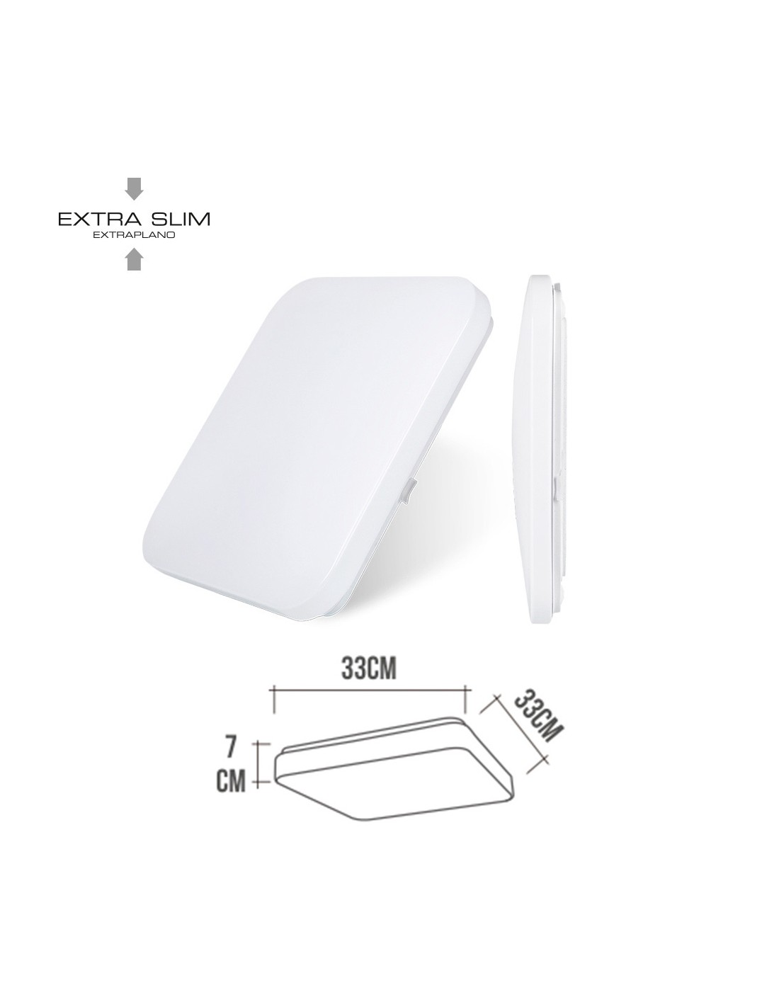Aplique cuadrado de superficie extraplano con 24 leds 18 w 1820 lm 6500 k, luz fria grado de proteccion ip20 clase f 220-240 v 33 x 33 x 6,9 cm