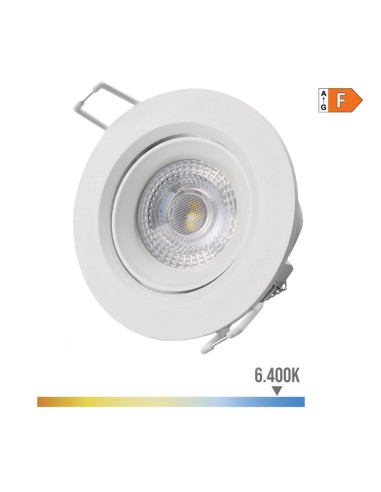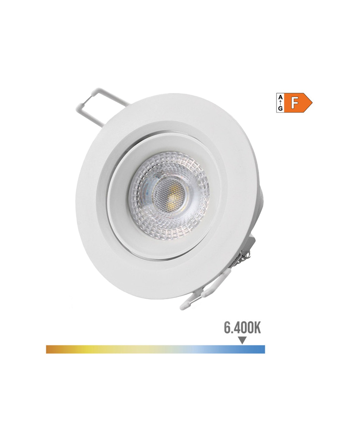 Downlight led empotrable redondo 5 w, luz fría, 6400 k, 380 lm, 8 leds. marco color blanco. ángulo apertura: 120°, flujo luminoso: 120°, ip20, 220 - 240 v ~50 hz, vida estimada: 25000 h, clase energética: f, medidas: exterior: ø10,6 cm - enclavamiento: ø7,1 cm