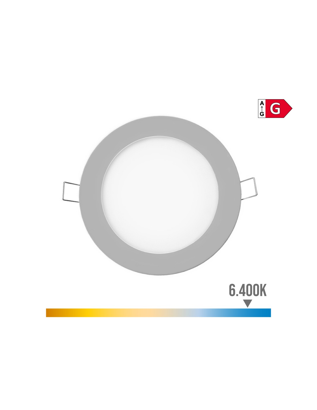 Mini downlight led empotrable redondo 6w 6400k luz fria 320lm. color cromo. angulo de apertura: 120°. ip20. clase energetica g.medidas: exterior: ø11,7cm - enclavamiento: ø10,8cm 220-240v 25.000h edm