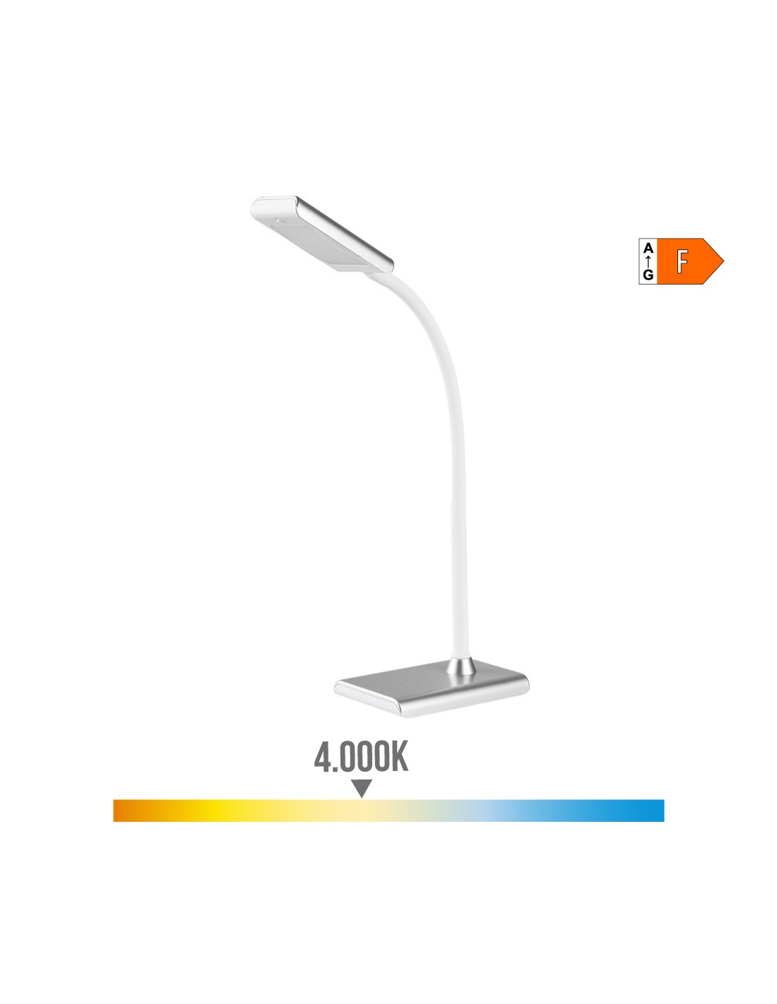 Flexo led sobremesa 7w 400lm 4000k luz dia. color plata. 220-240v medidas: 13x9x33cm edm