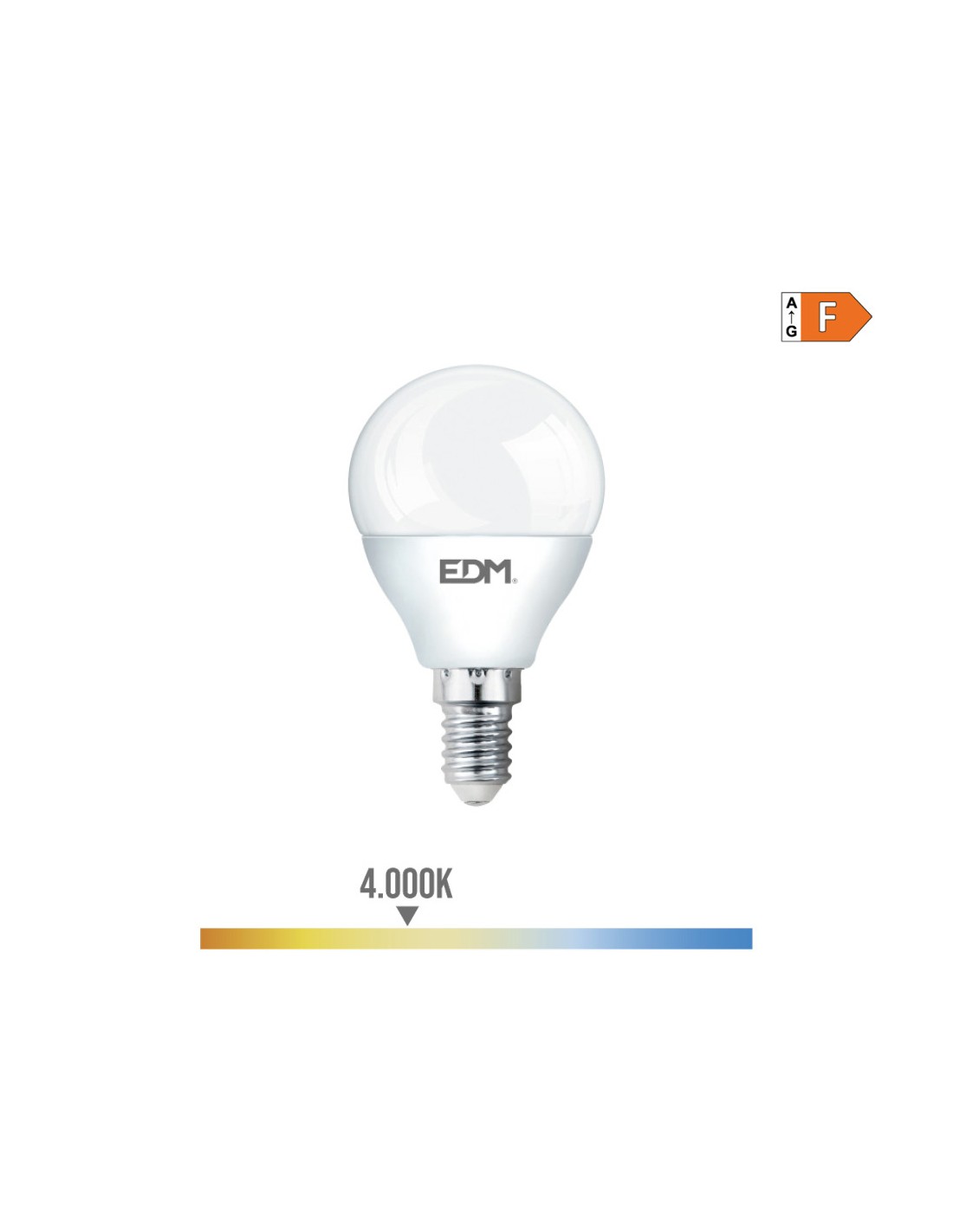 Bombilla esferica led e14 7w 600lm 4000k luz dia ø4,5x8cm (diámetro/alto) 25000h ac 220-240v clase energetica: f. angulo de apertura: 200° edm