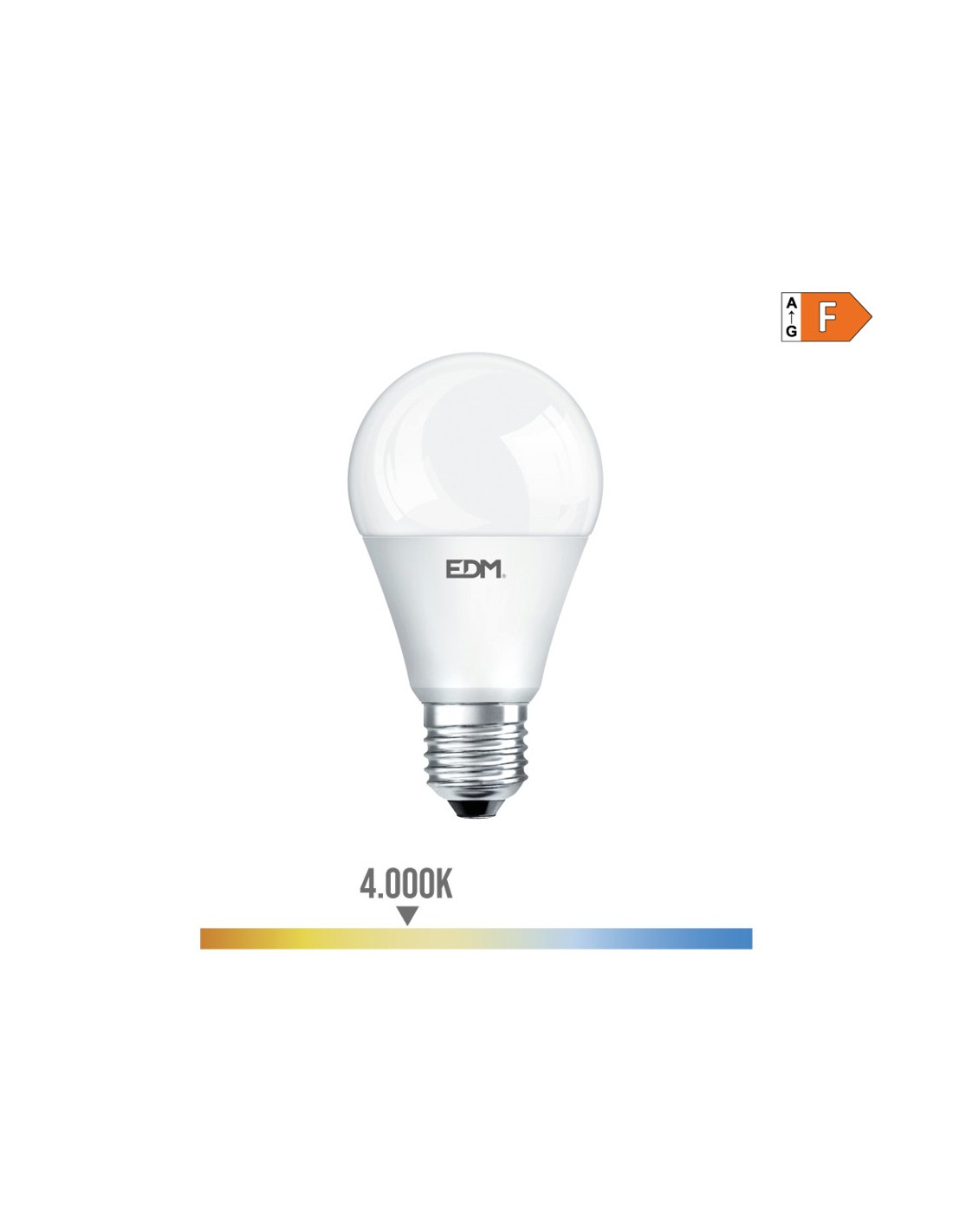 Bombilla standard led e27 12w 1154lm 4000k luz dia. medida: ø6x11cm (diámetro/alto) 25000h ac 220-240v. clase energetica: f. angulo de apertura: 220° edm