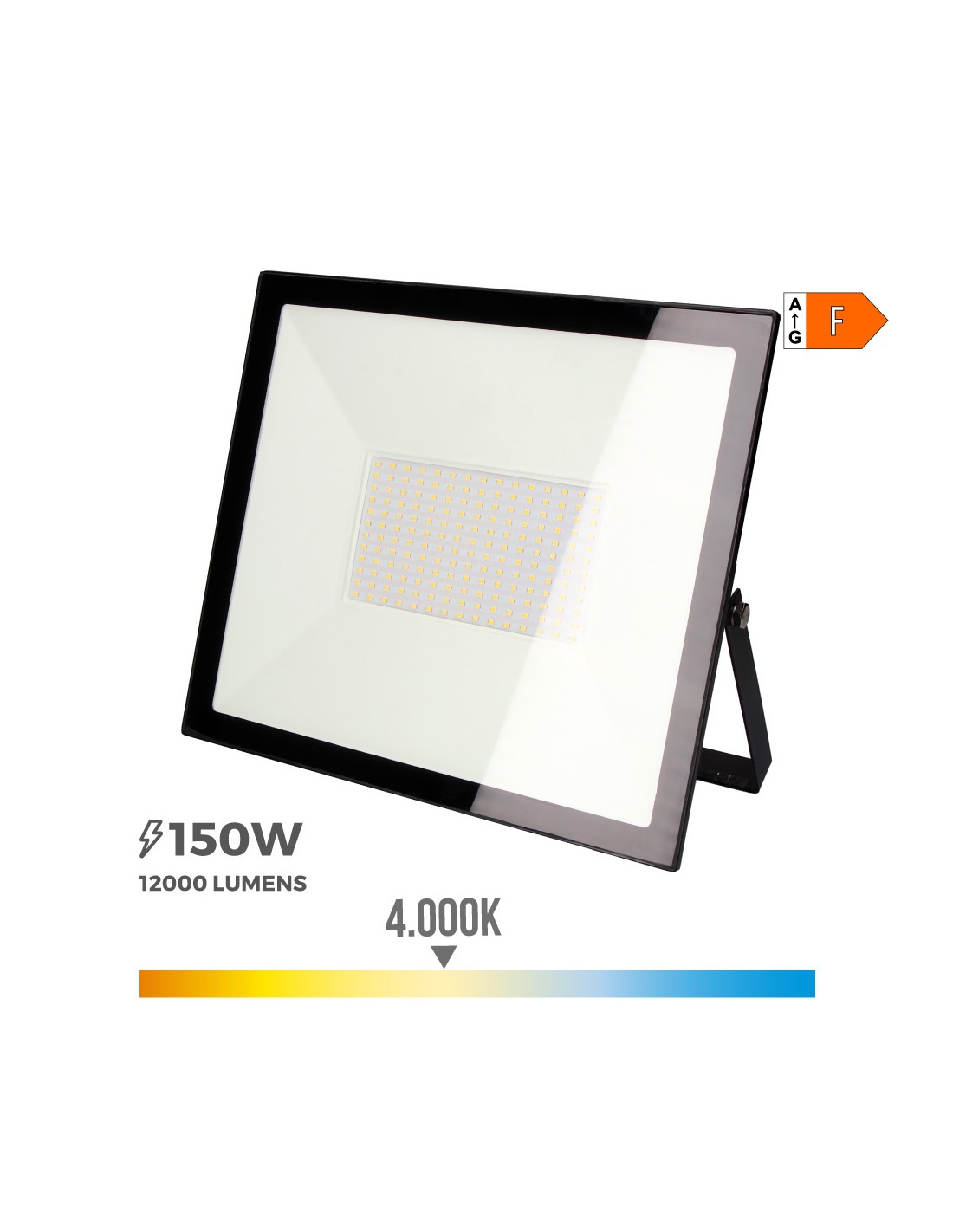Foco proyector led 150 w 12000 lm 6400 k luz día ip65. medidas: 35 x 31 x 4,5 cm vida estimada: 20000 h tensión: 220-240 v ~ 50 hz clase energética: f ángulo de apertura: 120°