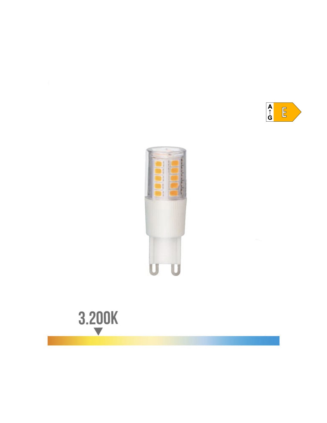 Bombilla g9 led 5.5w 650lm 3200k luz calida medidas: ø1,8x5,4cm (diámetro/alto) 25000h ac 220-240v clase energética: e. ángulo de apertura: 360° base ceramica edm