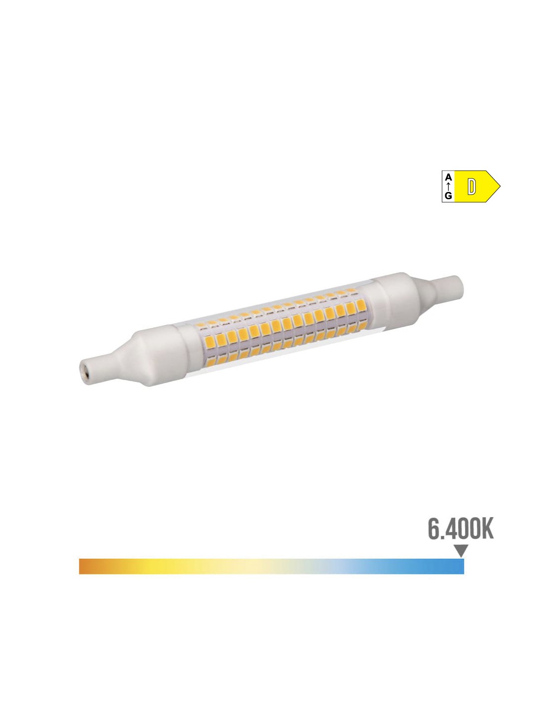 Bombilla lineal led 118mm r7s 9w 1280lm 6400k luz fria medidas: ø1,6x11,8cm medidas: (diámetro/alto) 30000h ac 220-240v clase energetica: d. angulo de apertura: 360° edm. no regulable