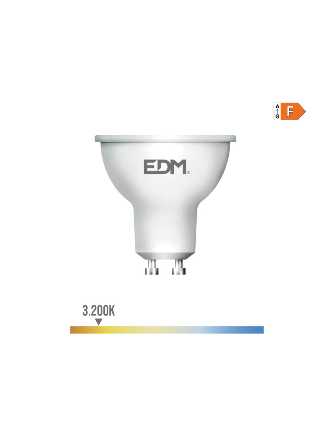 Bombilla dicroica led gu10 8 w 710 lm 3000 k luz cálida ø5 x 5,5 cm 25000 h ac 220-240 v clase energética: f ángulo de apertura: 120°