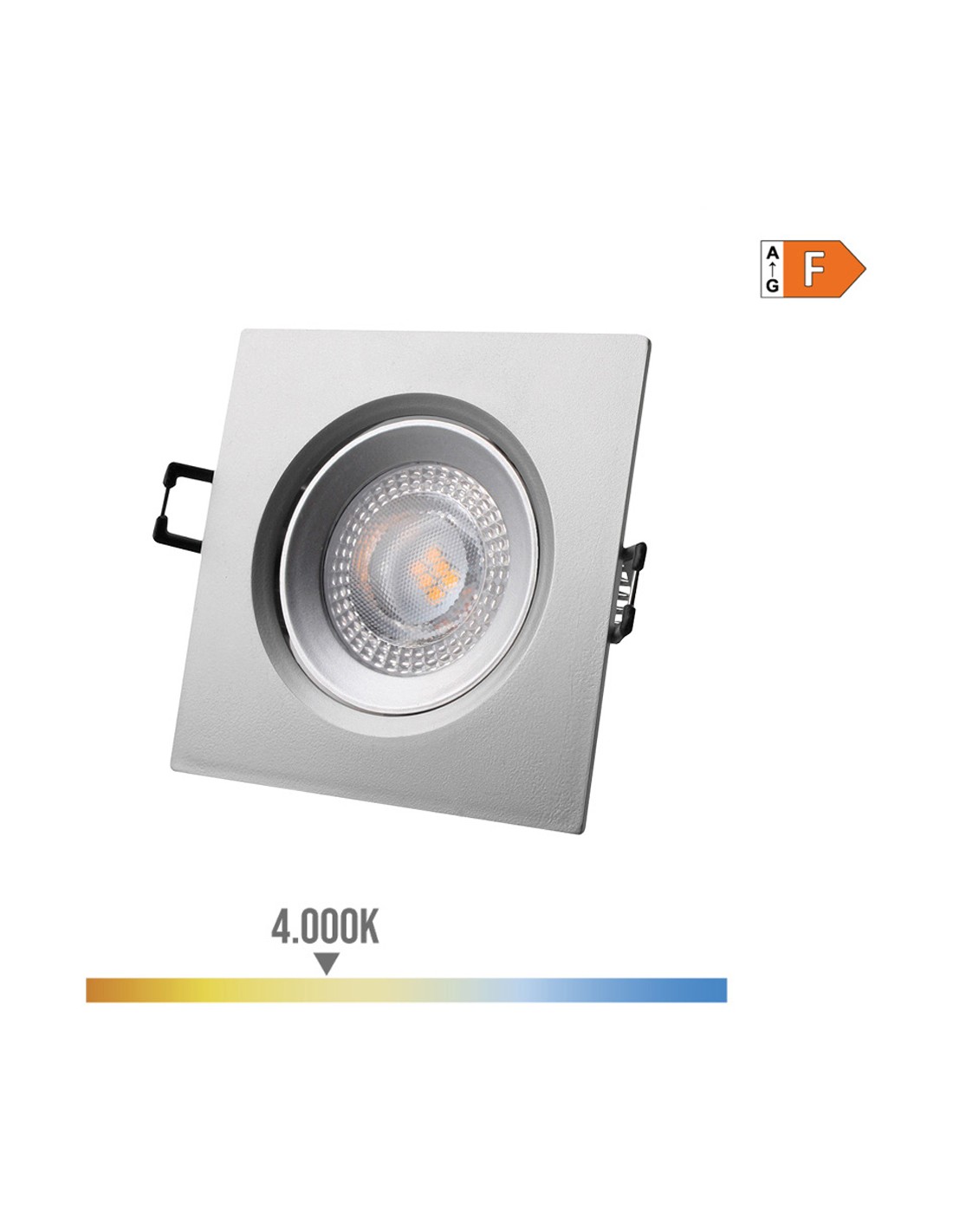 Downlight led empotrable cuadrado 5w 4000k luz dia. color cromo. clase energetica f. 380lm ip20. angulo apertura: 120° medidas: exterior: 9x9cm - enclavamiento: ø7cm. 220-240v. 25000h edm