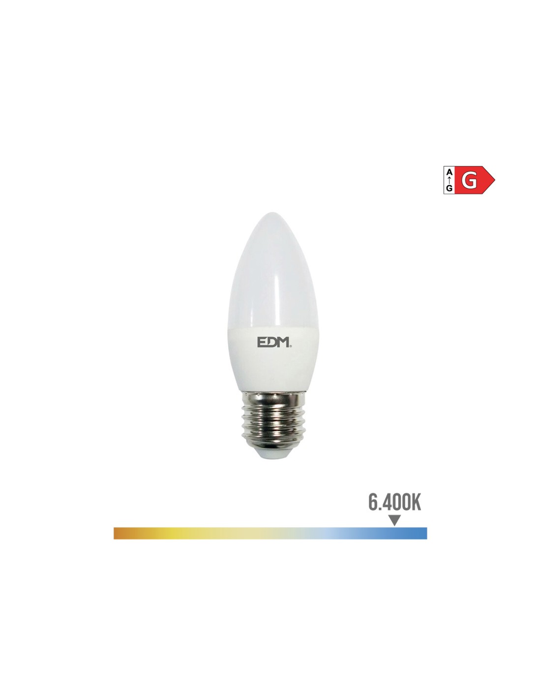 Bombilla vela led e27 5w 400lm 6400k luz fria ø3,5x10cm (diámetro/alto) 25000h ac 220-240v clase energetica: g. angulo de apertura: 200° edm
