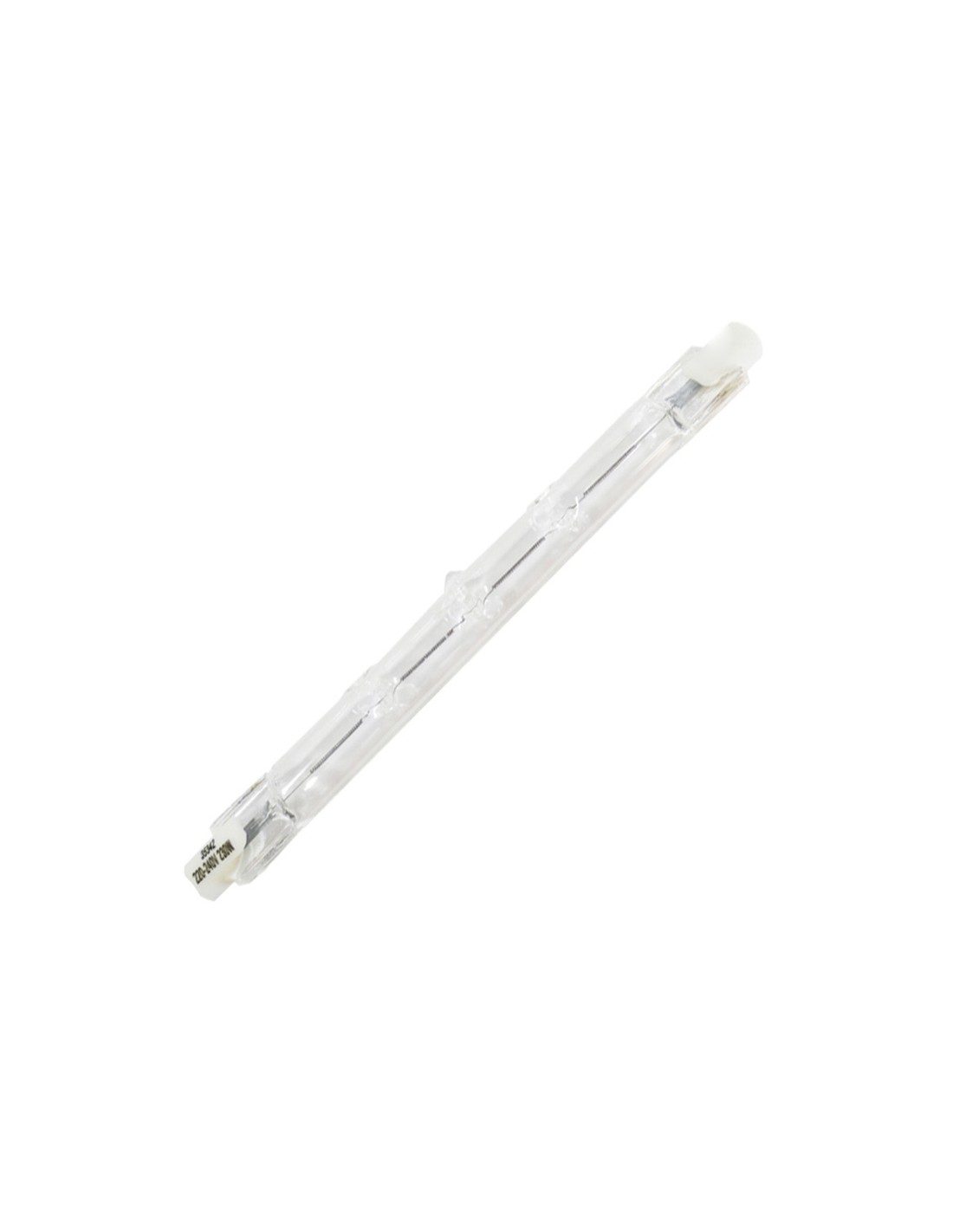 Lampara halogena lineal 500w. medida: 118mm. vida estimada 2000h. tipo de luz: ultra brillo. angulo de apertura: 360°. dimable. tension: 220-240v