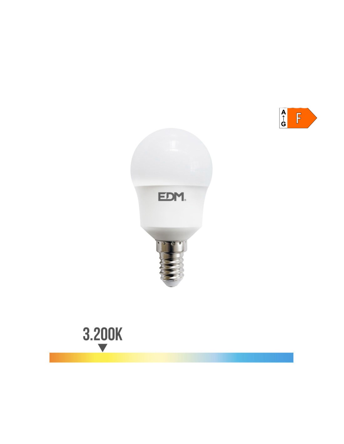 Bombilla esferica led e14 8,5w 880lm 3000k luz calida ø4,5x8,8cm 20000h ac 220-240v clase energetica: f. angulo de apertura: 220° edm
