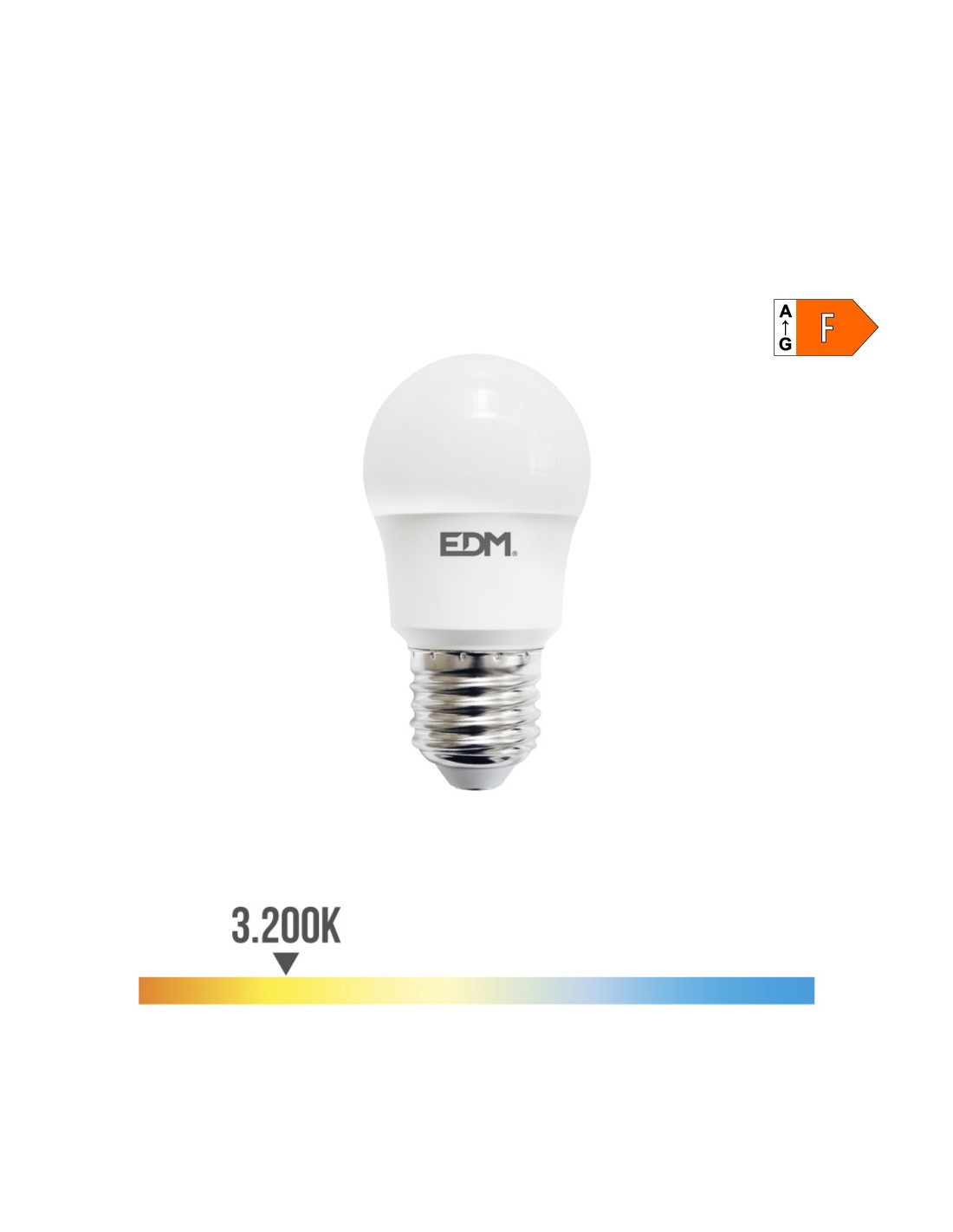 Bombilla esferica led e27 8,5w 880lm 3000k luz calida ø4,5x8,6cm 20000h ac 220-240v clase energetica: f. angulo de apertura: 220° edm