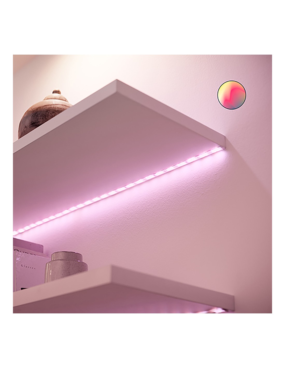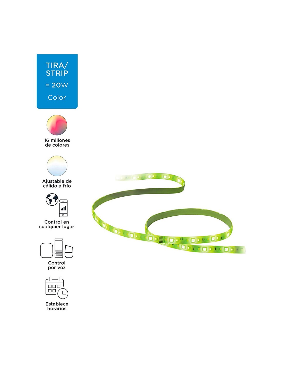 Tira de led 2m adhesiva 1.600lm starterkit wiz philips funciona con wifi y bluetooth, trae iluminacion intelegiente para tu dia a dia, puede crear hasta 16 millones de colores. puede establecer un horario para encender y apagar la tira de led de acuerdo con las rutinas diarias o semanales, puedes controlar desde tu telefono o por voz, y tener acceso remoto incluso cuando no estes. las tiras de led wiz se conectan a tu wifi existente, no se necesita hardware adicional. ampliable 10m máx.