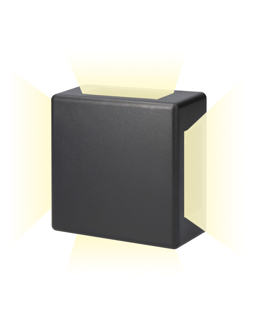 Aplique led 6w 516lm 3000k luz calida cuadrado 4 proyecciones . válido para exterior. 12 leds. 50ma. 200/240v 50hz. medida: 11.5x11.5x5cm (ancho/fondo/alto). con kit de montaje.edm