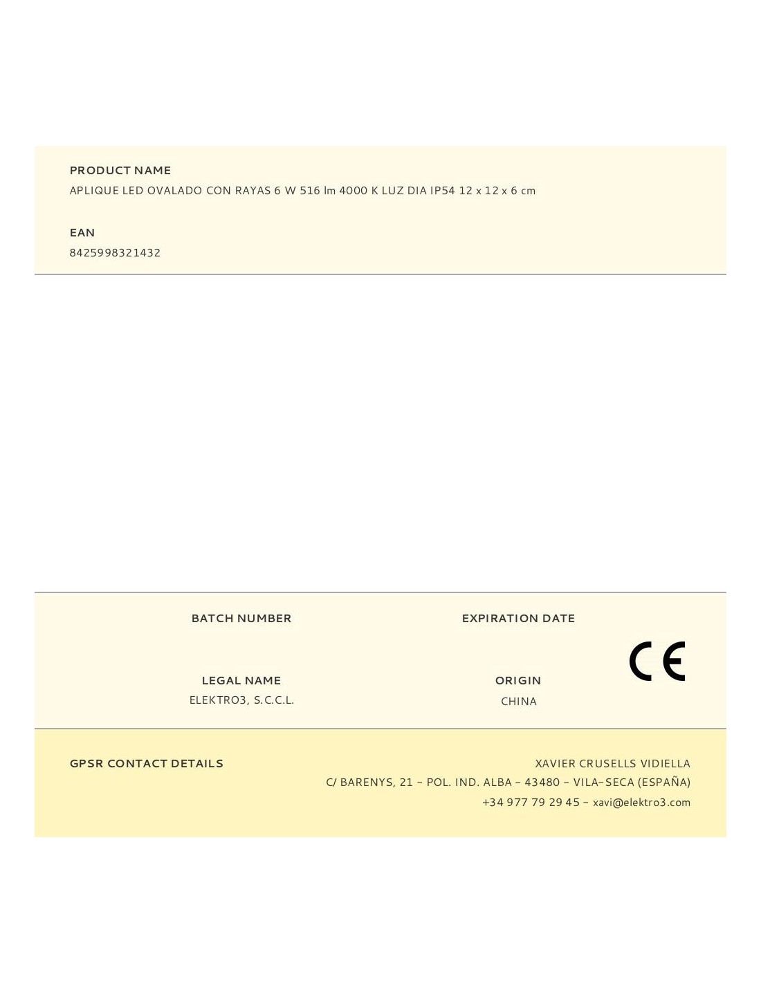 Aplique led 6w 516lm 4000k luz dia ovalado con rayas edm. válido para exterior. 12 leds. 50ma. 200/240v 50hz. dimensiones: 12x12x6cm. con kit de montaje.