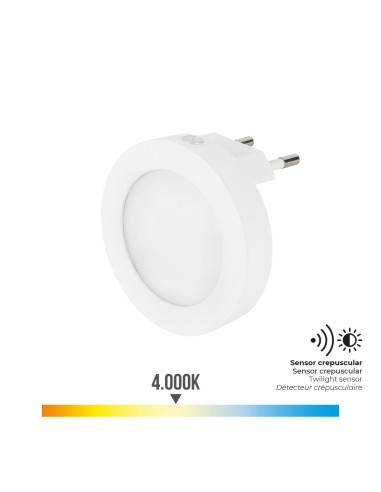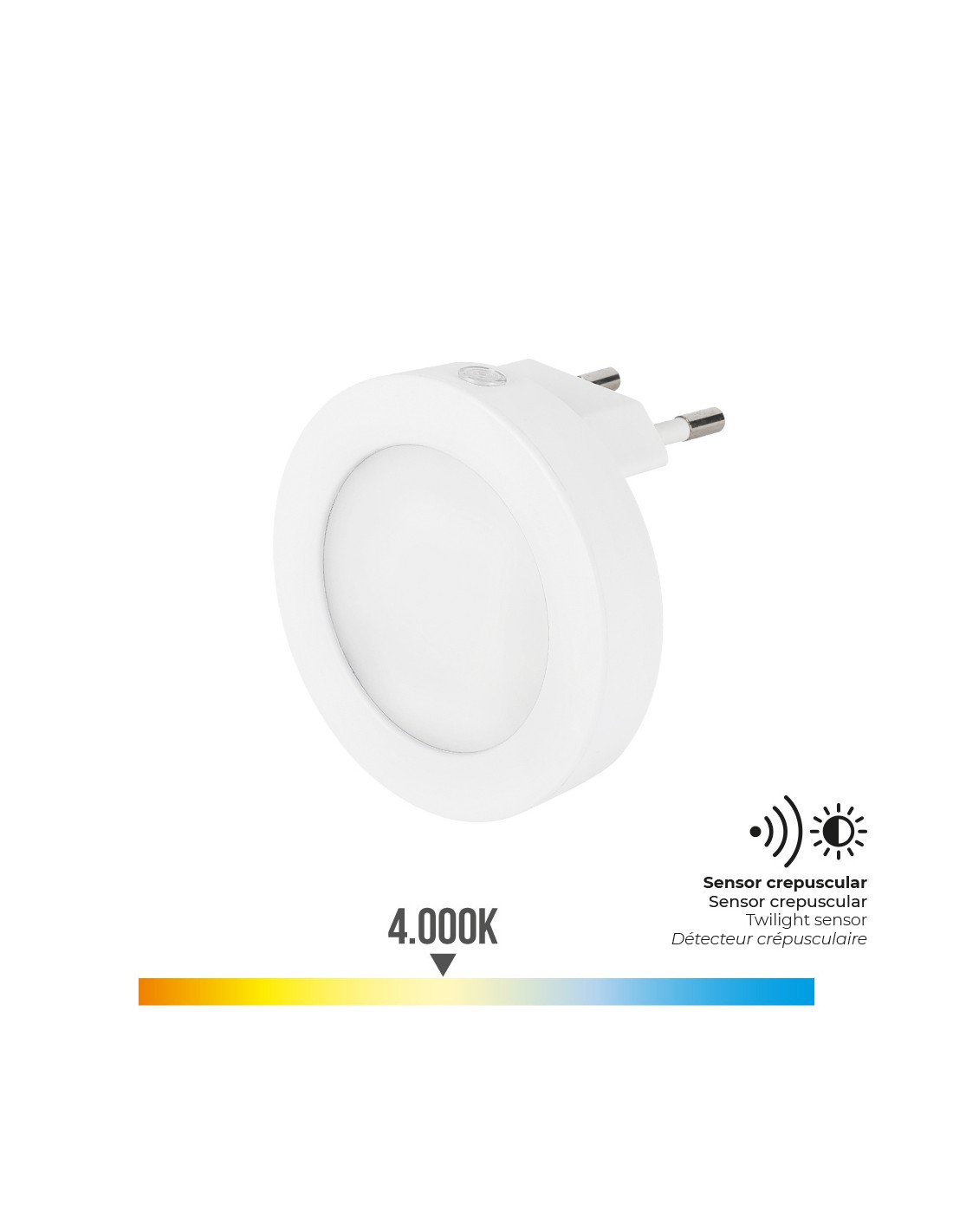 Piloto de noche led 0,5w 5lm 4000k luz dia redondo con sensor crepuscular 15lux. 220-240v 50hz. 20ma. 120°. ø6,5x5,3cm edm