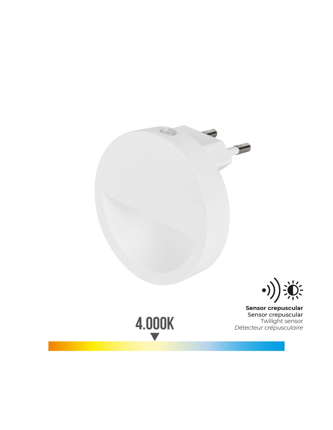 Piloto de noche led 0,5w 5lm 4000k luz dia redondo con visera y con sensor crepuscular 15lux. 220-240v 50hz. 20ma. 120°. ø6,5x4,5cm (diámetro/alto) edm