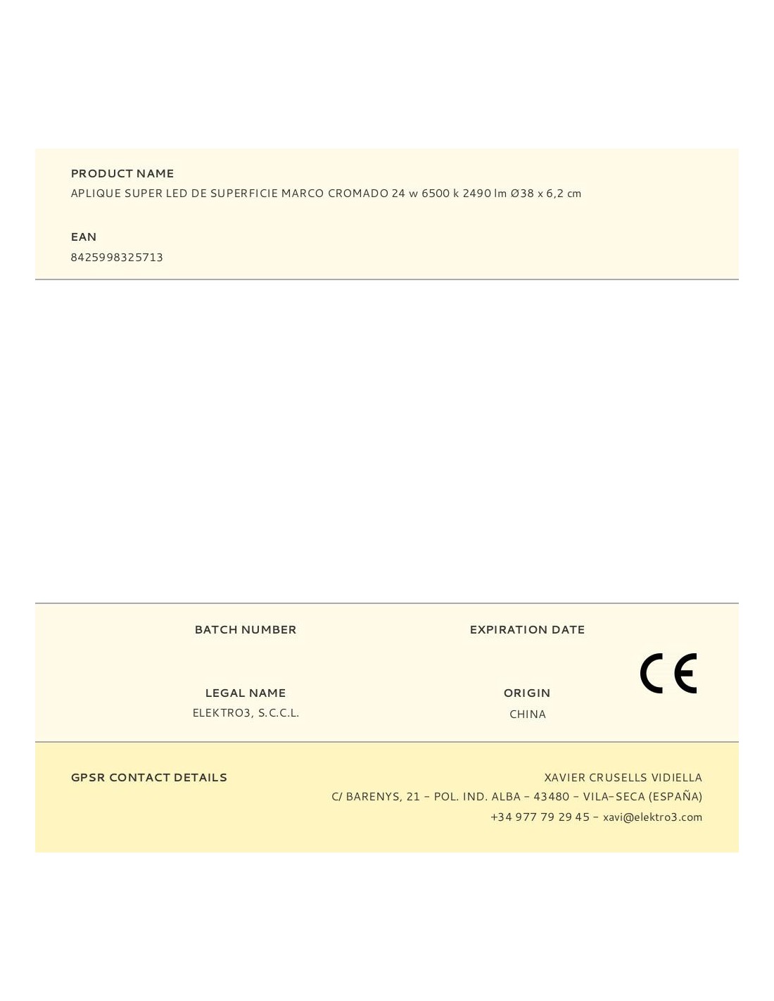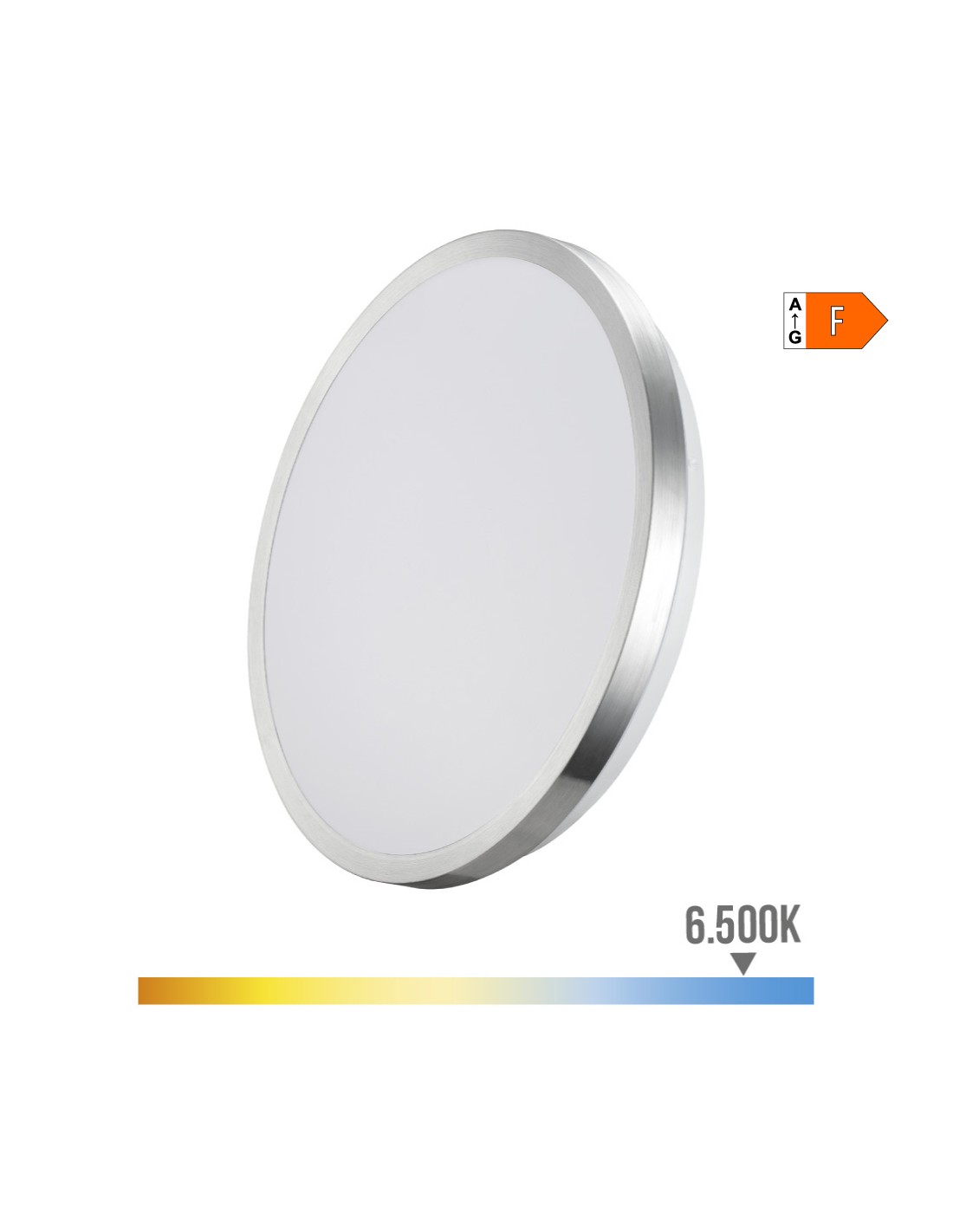 Aplique super led de superficie marco cromado luz fria 24 w 6500 k 2490 lm ø38 x 6,2 cm. marco cromado.grado de proteccion ip20. circular, clase f 220-240 v, no regulable, pf 0,7, ra 80, angulo apertura 120° dimensiones: ø38 x 6,2 cm