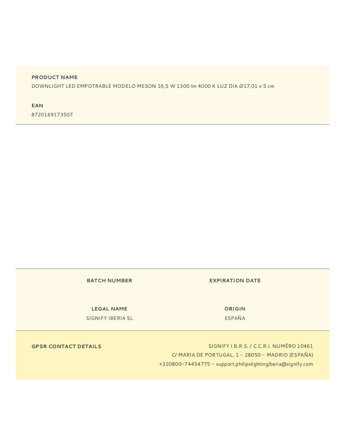 Downlight led de superfície/empotrar 16,5w 1300lm 4000k luz dia. mod. meson. fabricado en plastico. color blanco. ip20, irc 80, no regulable, ángulo apertura 110°, grado de proteccion ip20 tamaño: ø17,01x5cm (diametro/altura). tension: 220-240v. philips