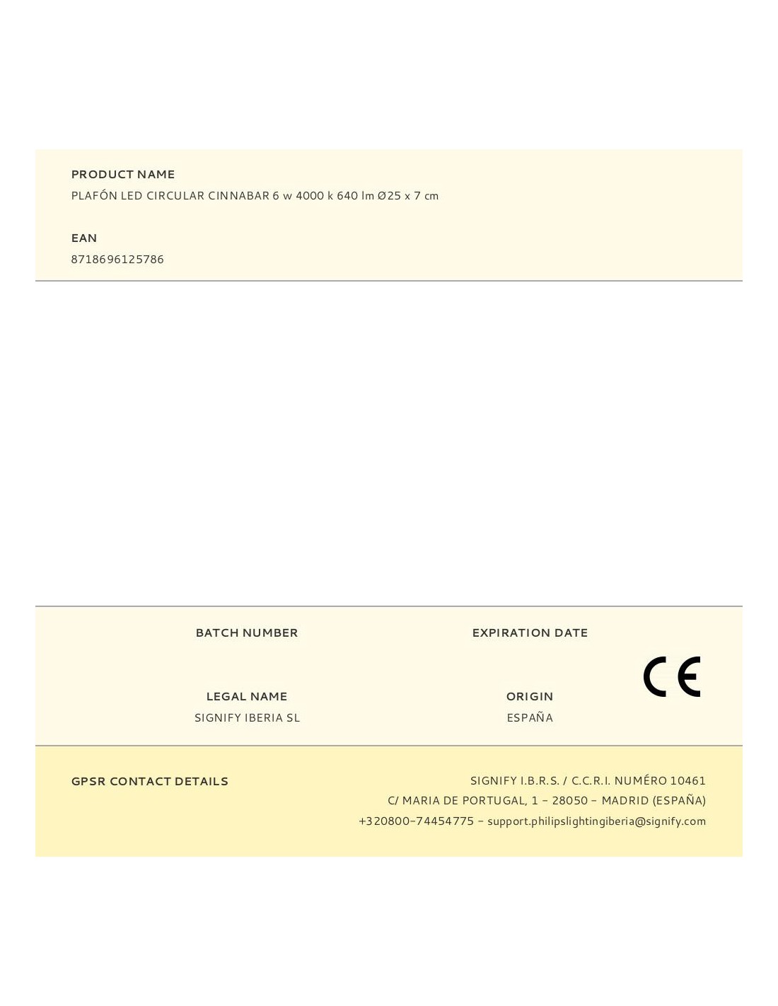 Plafón led circular cinnabar 6 w 4000 k 640 lm. fabricado en plastico, color blanco. grado de proteccion: ip20. irc80, no regulable, tension: 220-240v. tamaño: ø25 x 7 cm